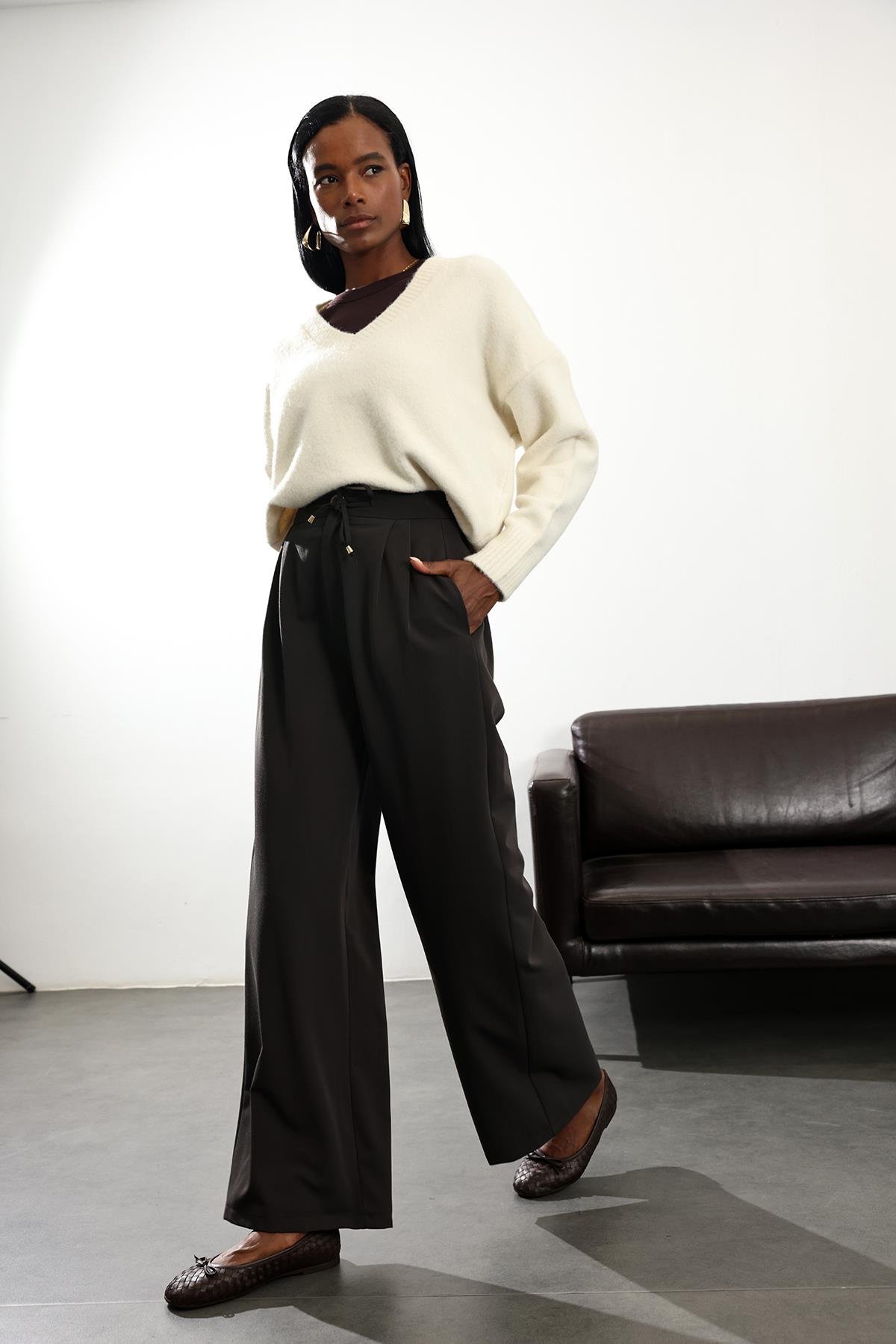 Acı Kahve Pileli Palazzo Pantolon 51212 (FW-PTLN2113_Acı Kahve)