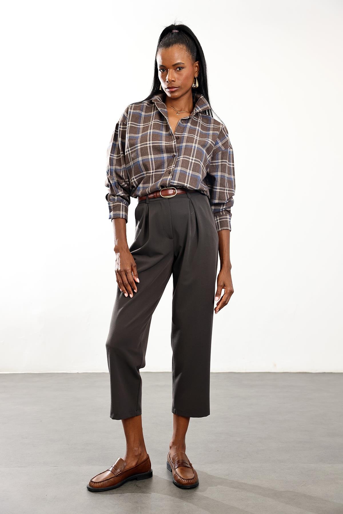 Acı Kahve Yüksek Bel Havuç Pantolon 51207 (FW-PTLN2168_Acı Kahve)
