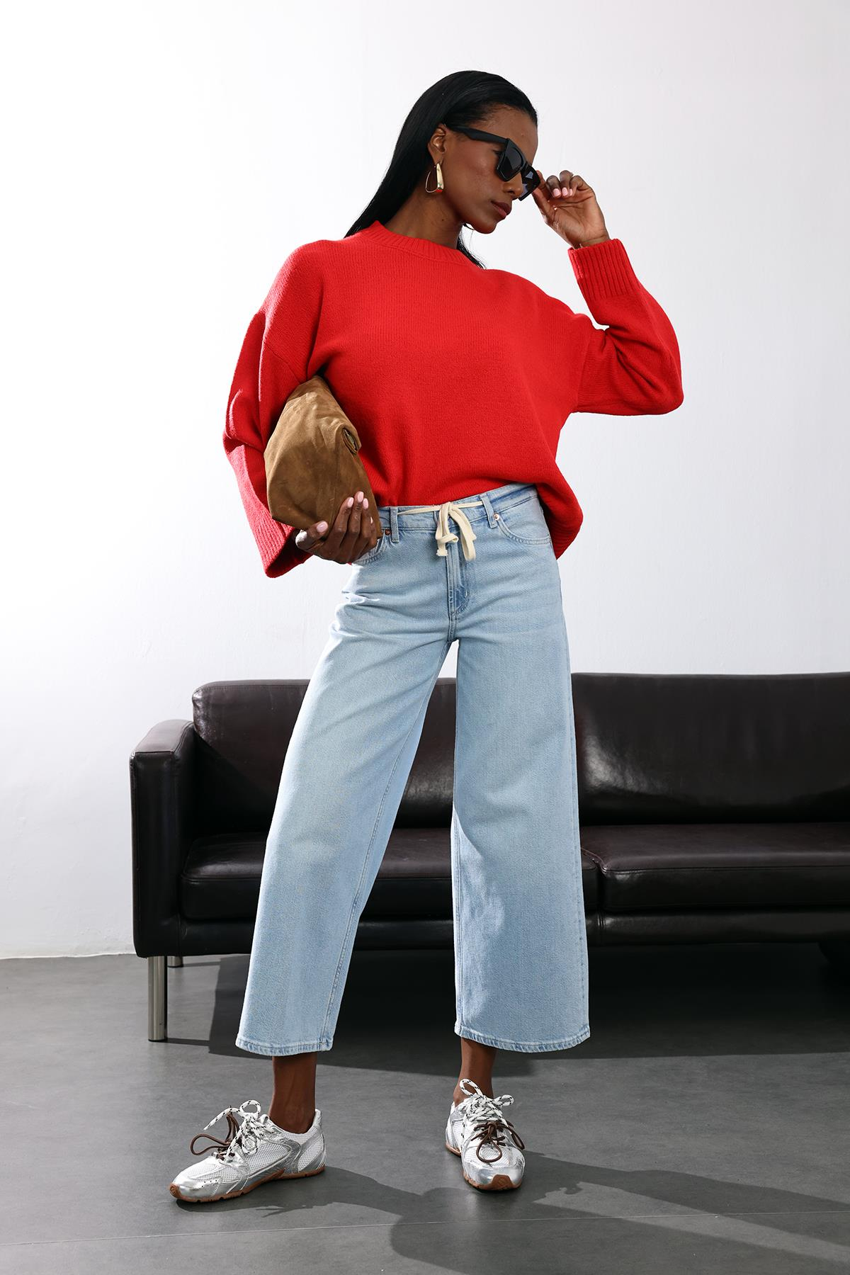 Açık Mavi Beli İpli Rahat Pantolon (FW-PTLN2185_Açık Mavi)
