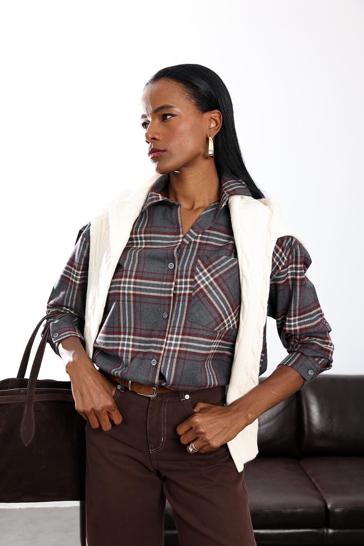 Bordo Ekose Gömlek 40146 Antrasit Ekose Gömlek 40146