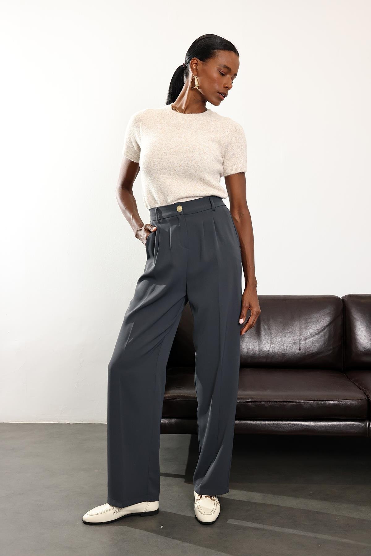 Antrasit Gold Düğmeli Palazzo Pantolon 51078 (FW-PTLN2130_Antrasit)