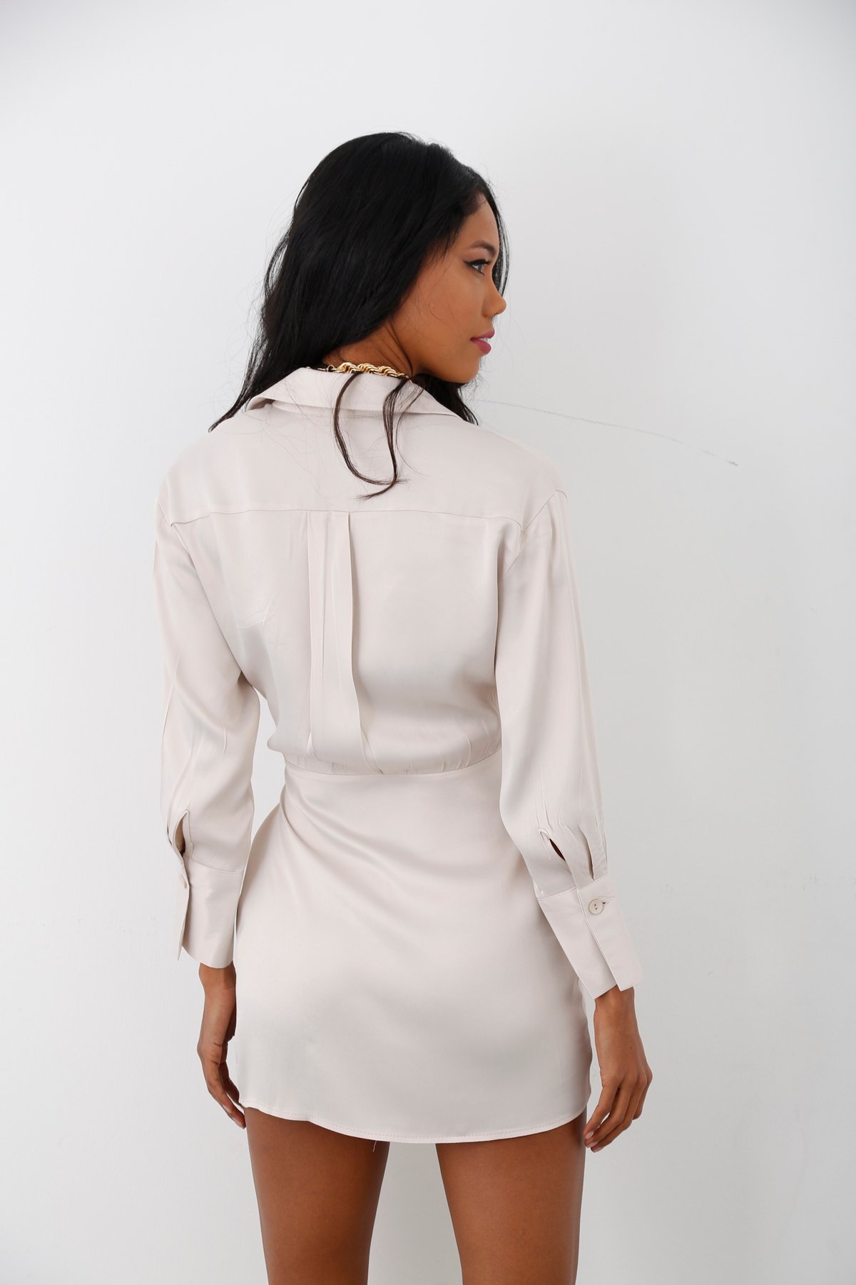 Bej Anvelop Saten Elbise 11915 (SS-ELBS1839_Bej)