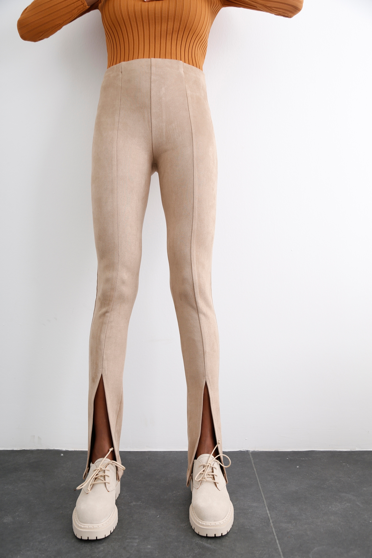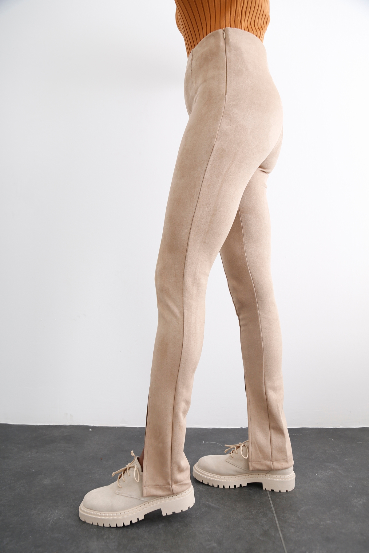 Bej Paçası Yırtmaçlı Süet Pantolon 70938 (FW-PTLN1003_Bej)