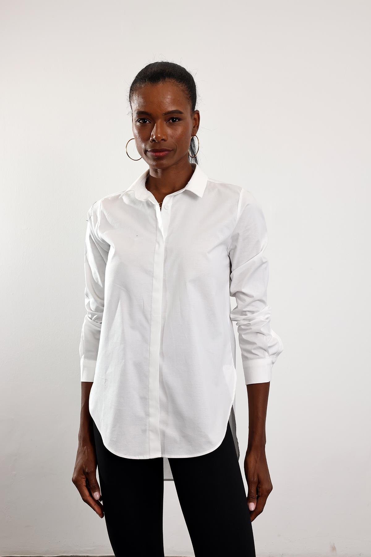 Beyaz Arkası Uzun Binici Gömlek 0006