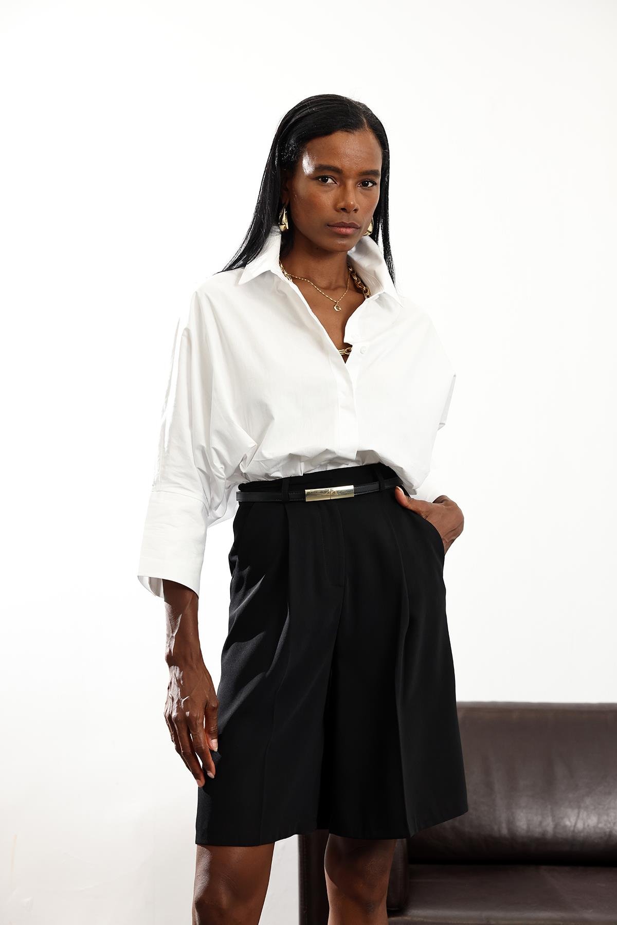 Beyaz Geniş Kollu Poplin Gömlek 4986