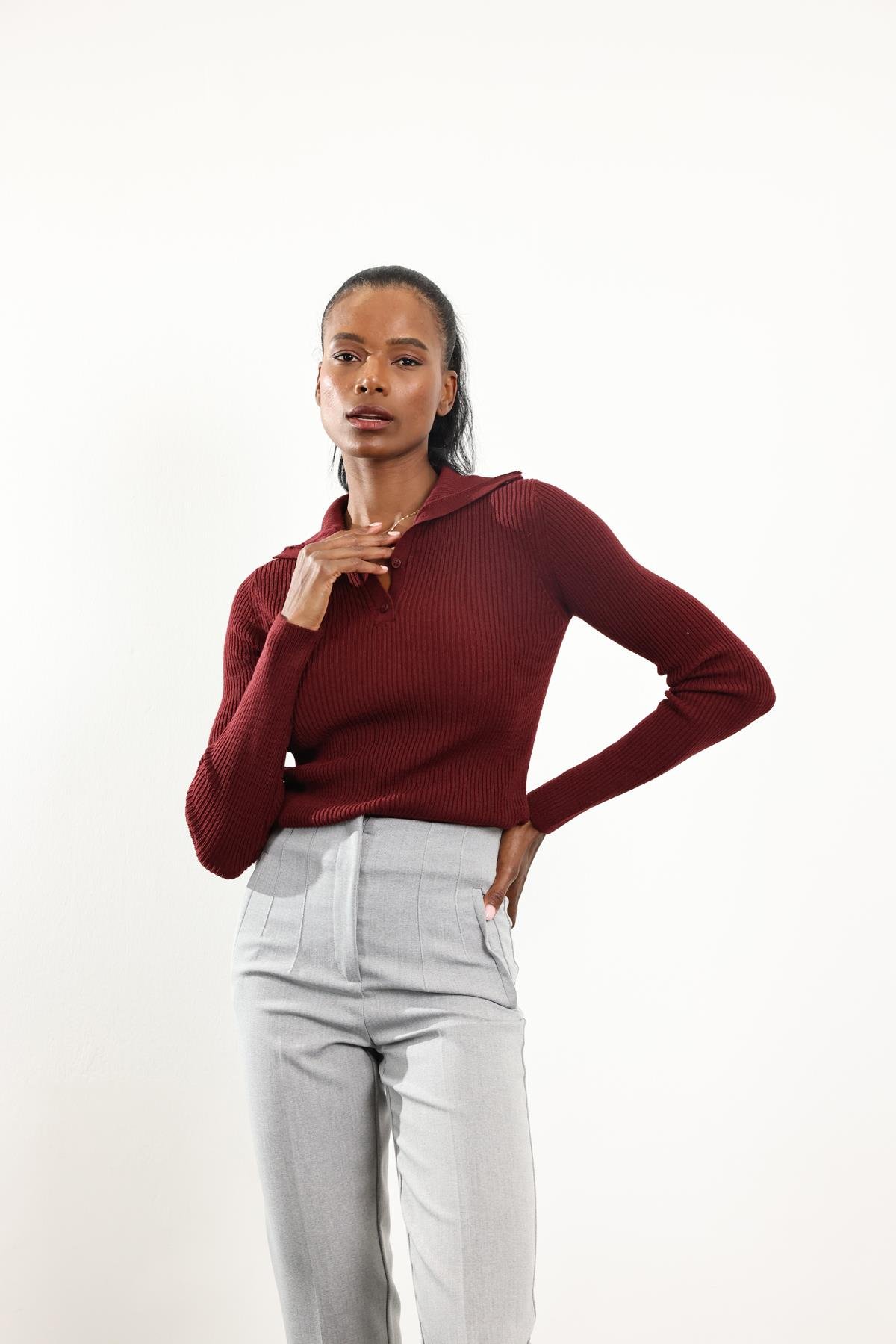 Bordo Polo Yaka Düğmeli Triko 251001 (FW-KZHR0656_Bordo)