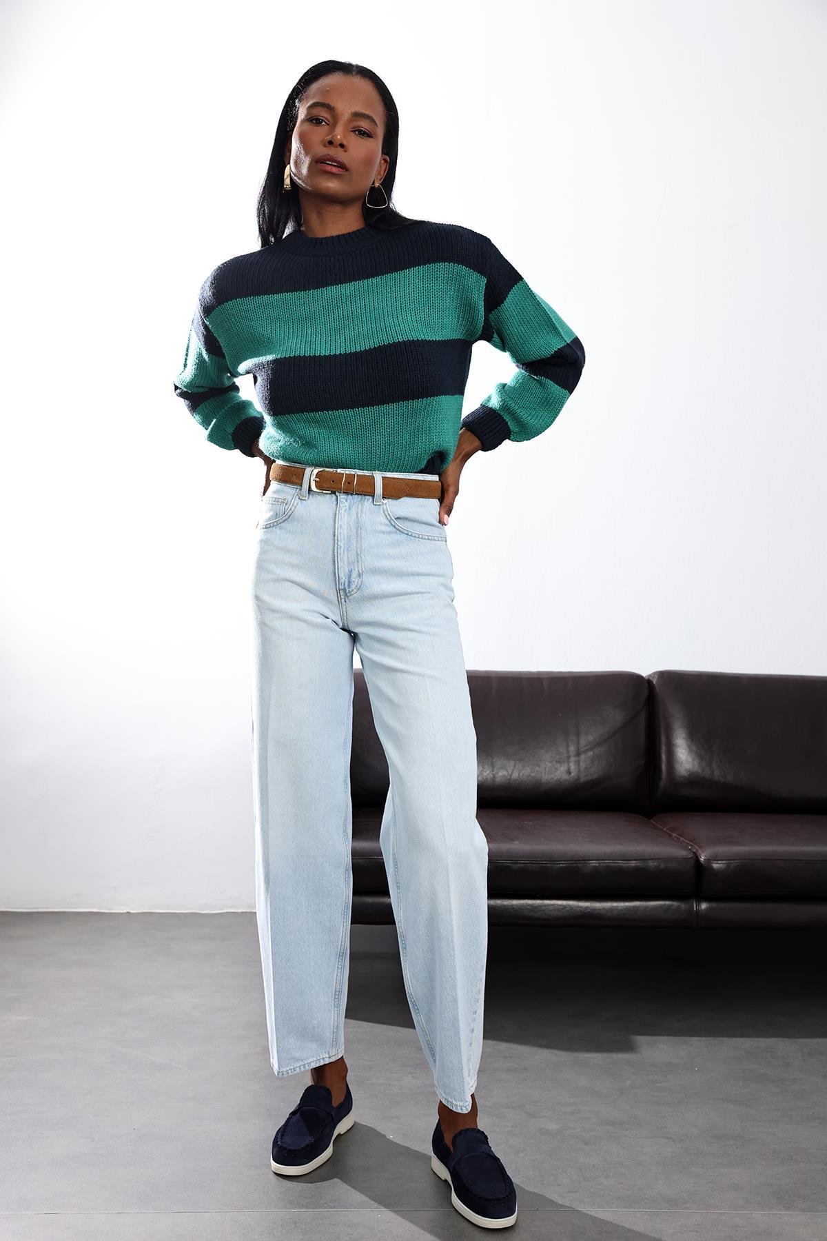Buz Mavi Yüksek Bel Barrel Jean (FW-PTLN2186_Buz Mavi)