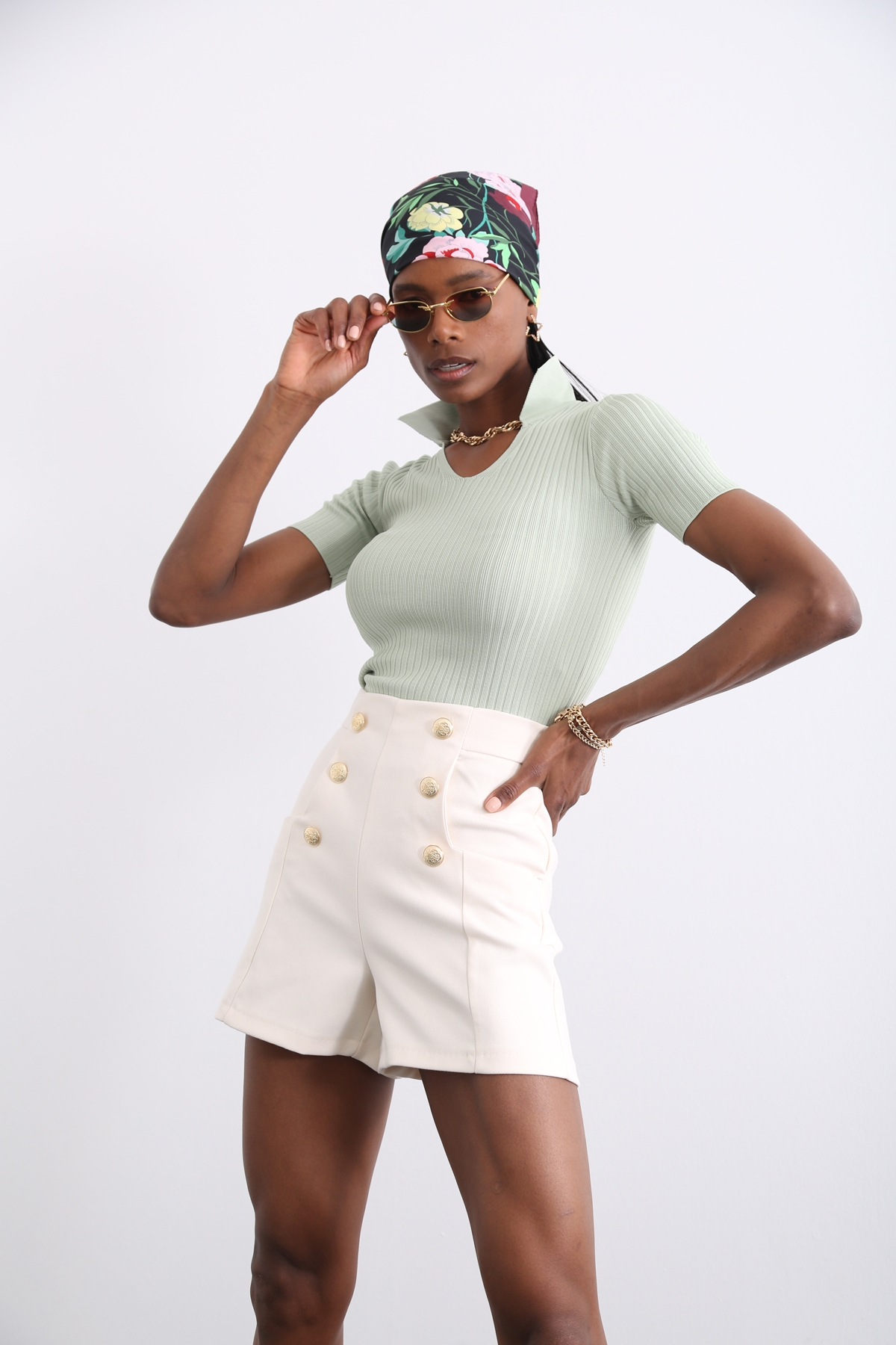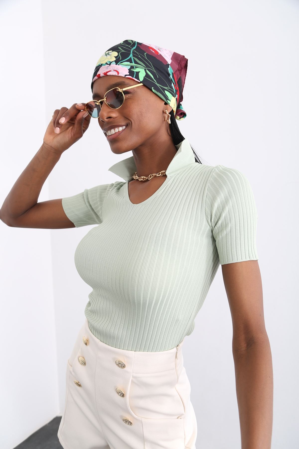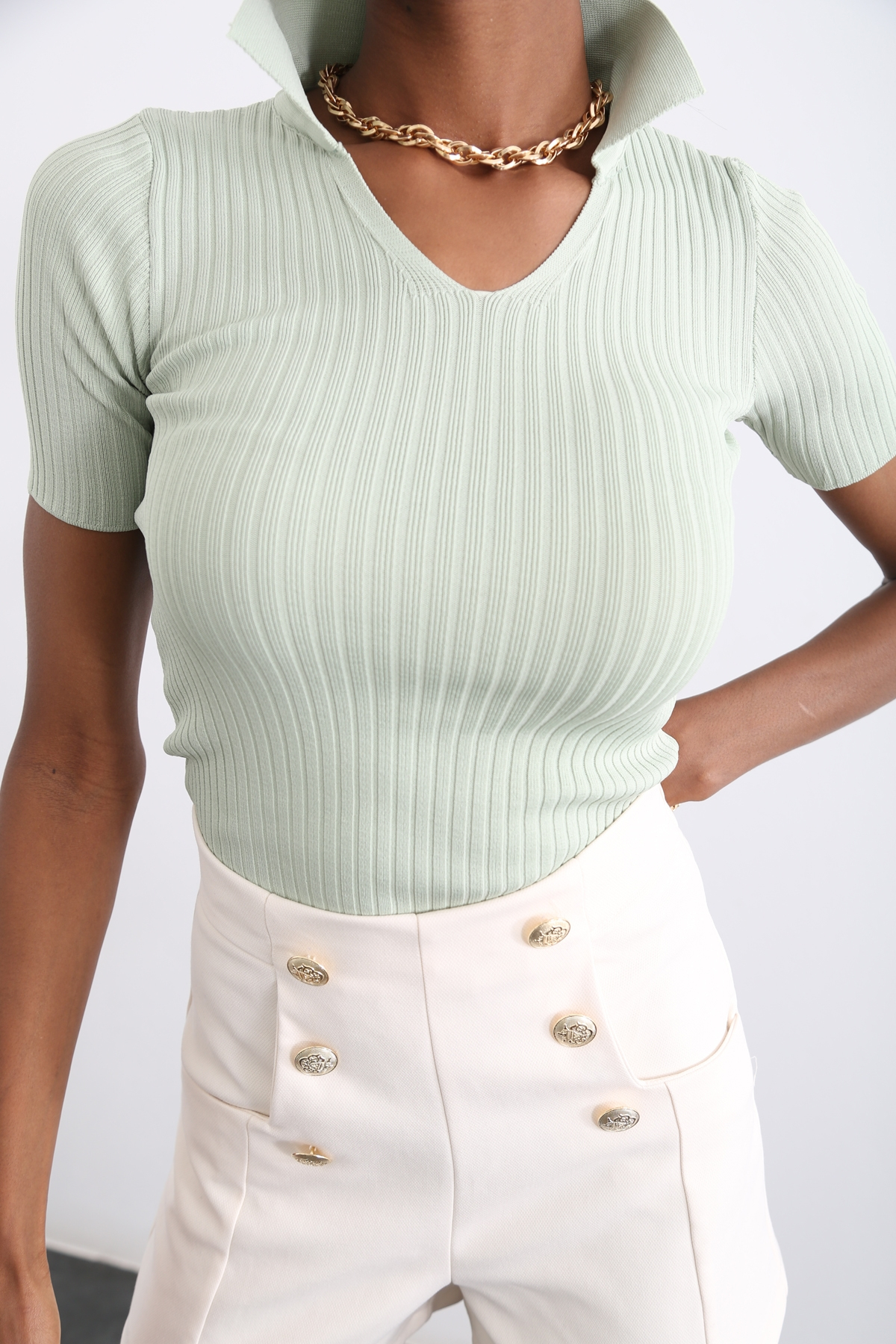 Çağla Yeşili Polo Yaka Fitilli Tshirt 2103