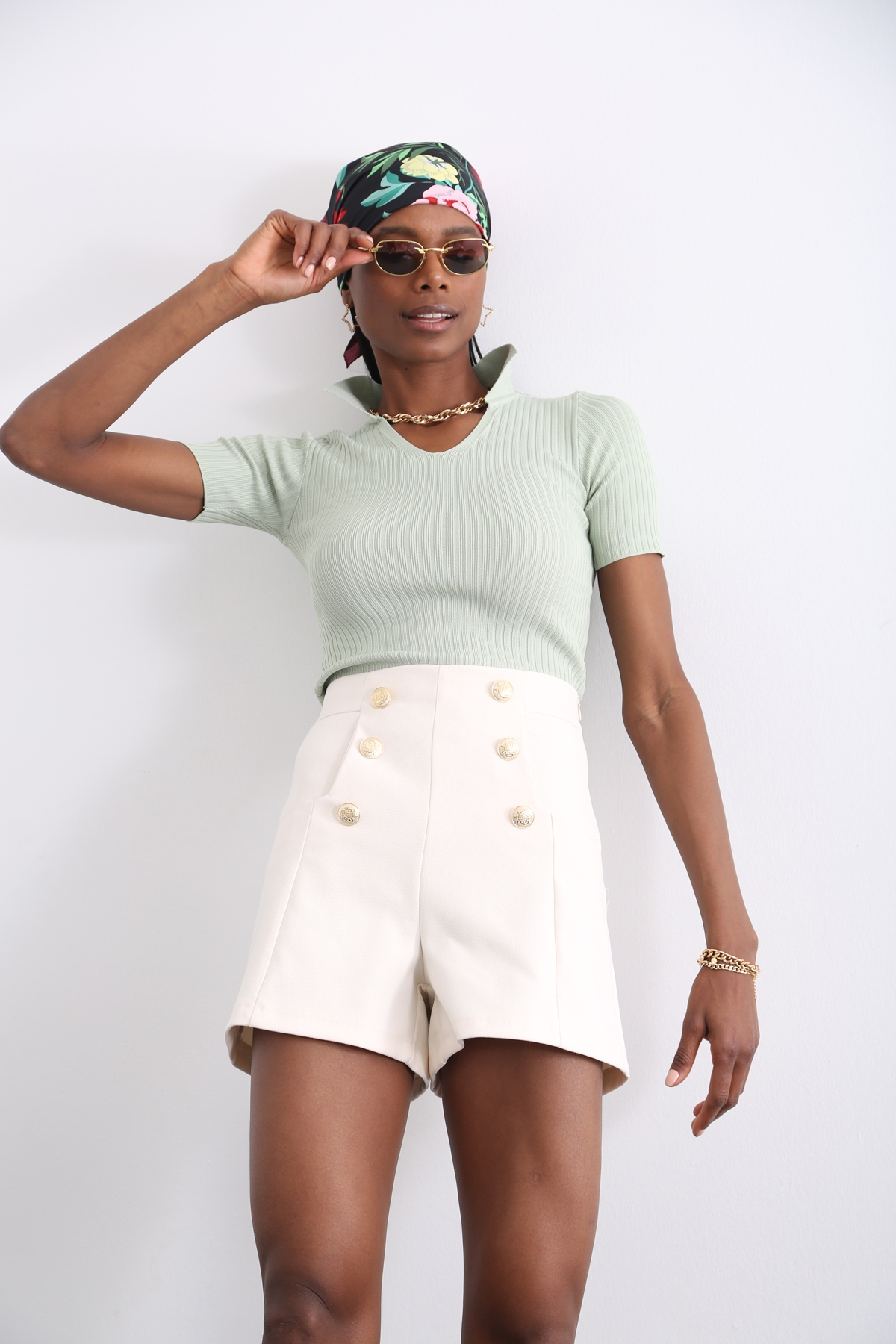 Çağla Yeşili Polo Yaka Fitilli Tshirt 2103 (SS-TSH00611_Çağla Yeşili)