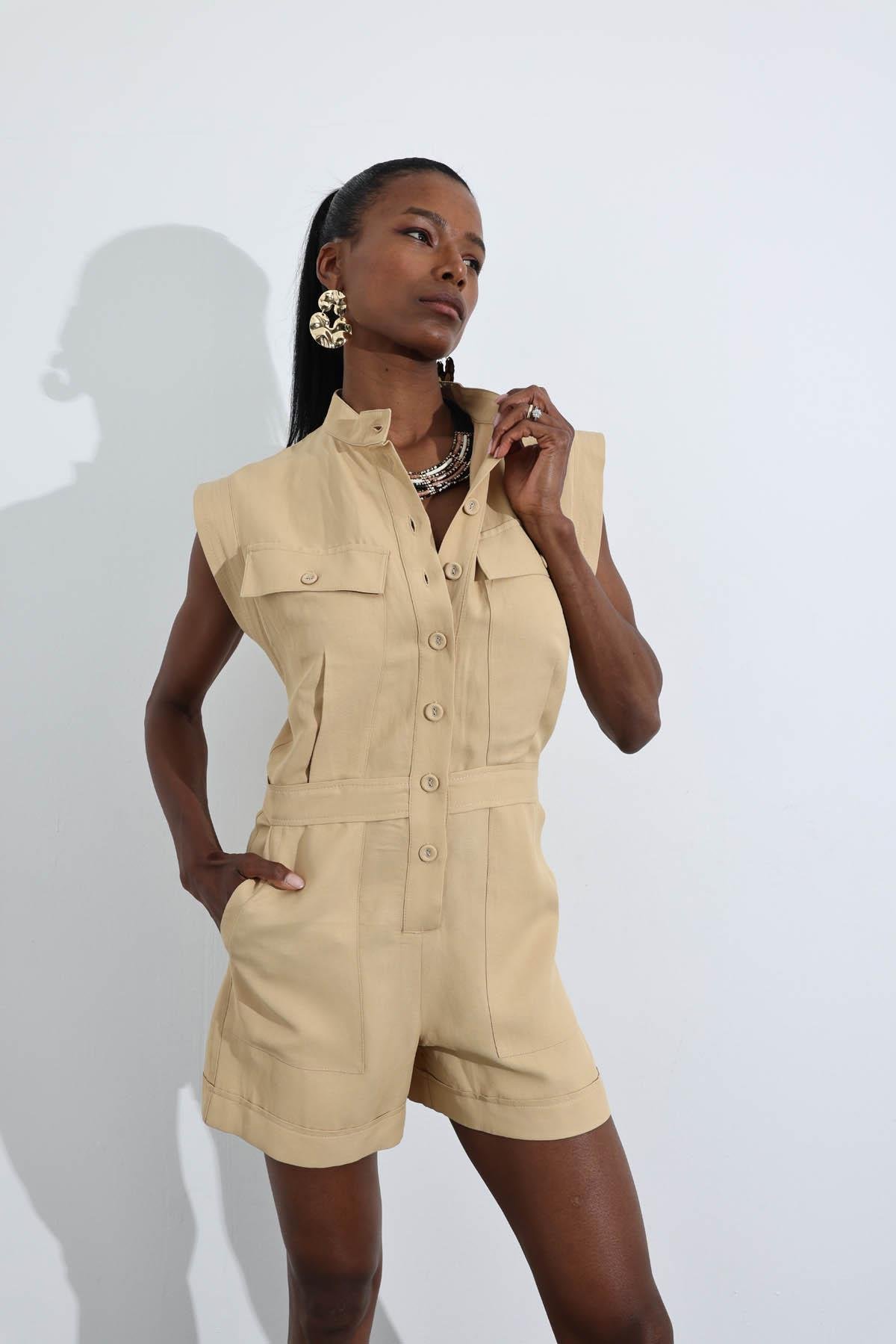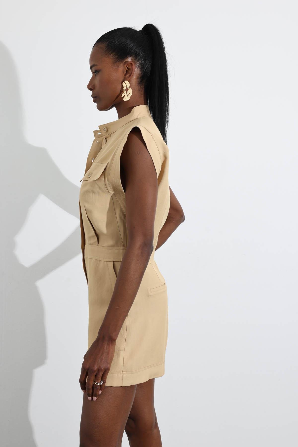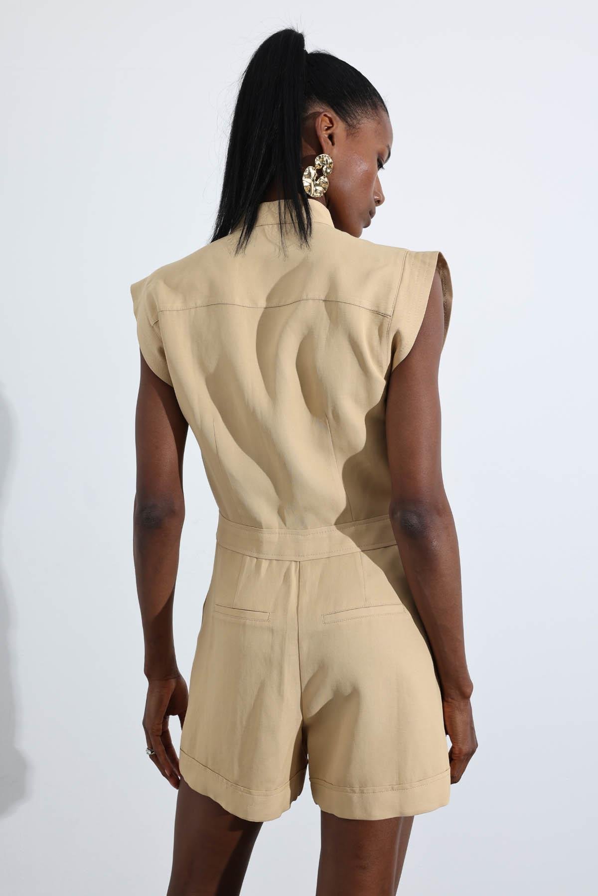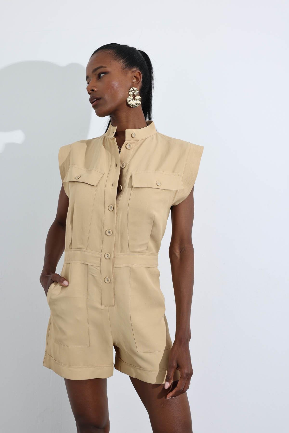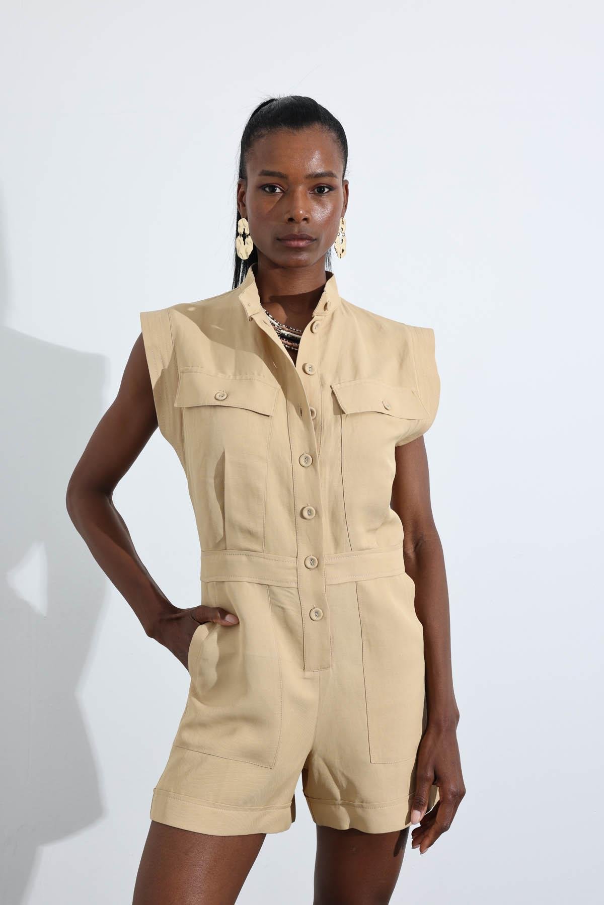 Camel Kaplama Düğmeli Şort Tulum (SS-TLM00408_Camel)