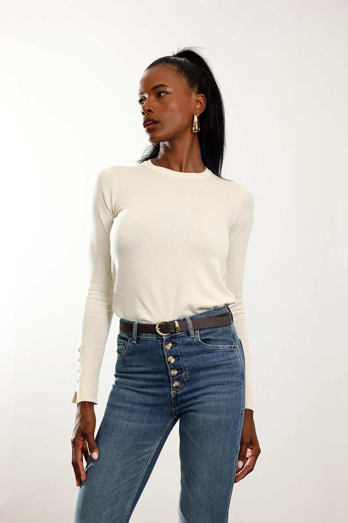 Ekru Basic Düz Triko Kazak (FW-KZHR0664_Ekru)