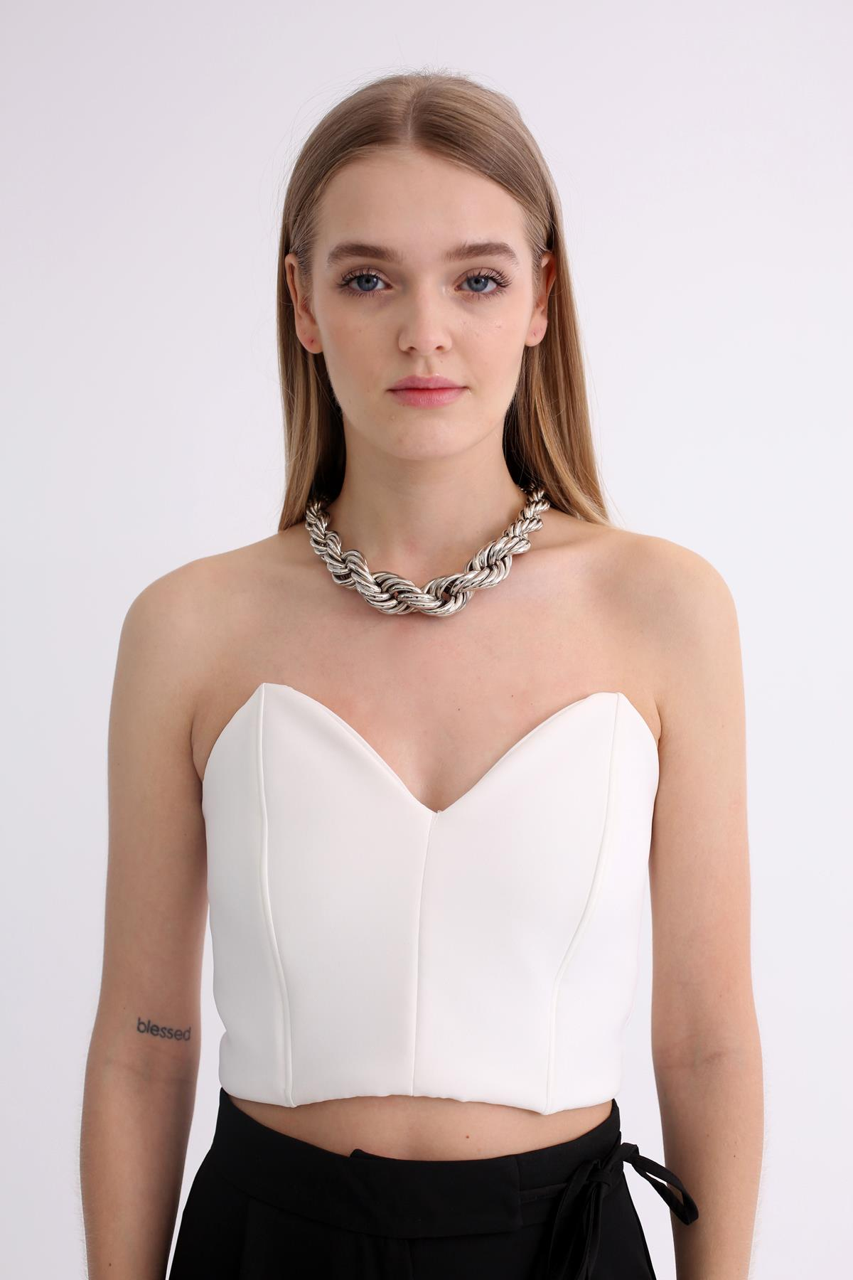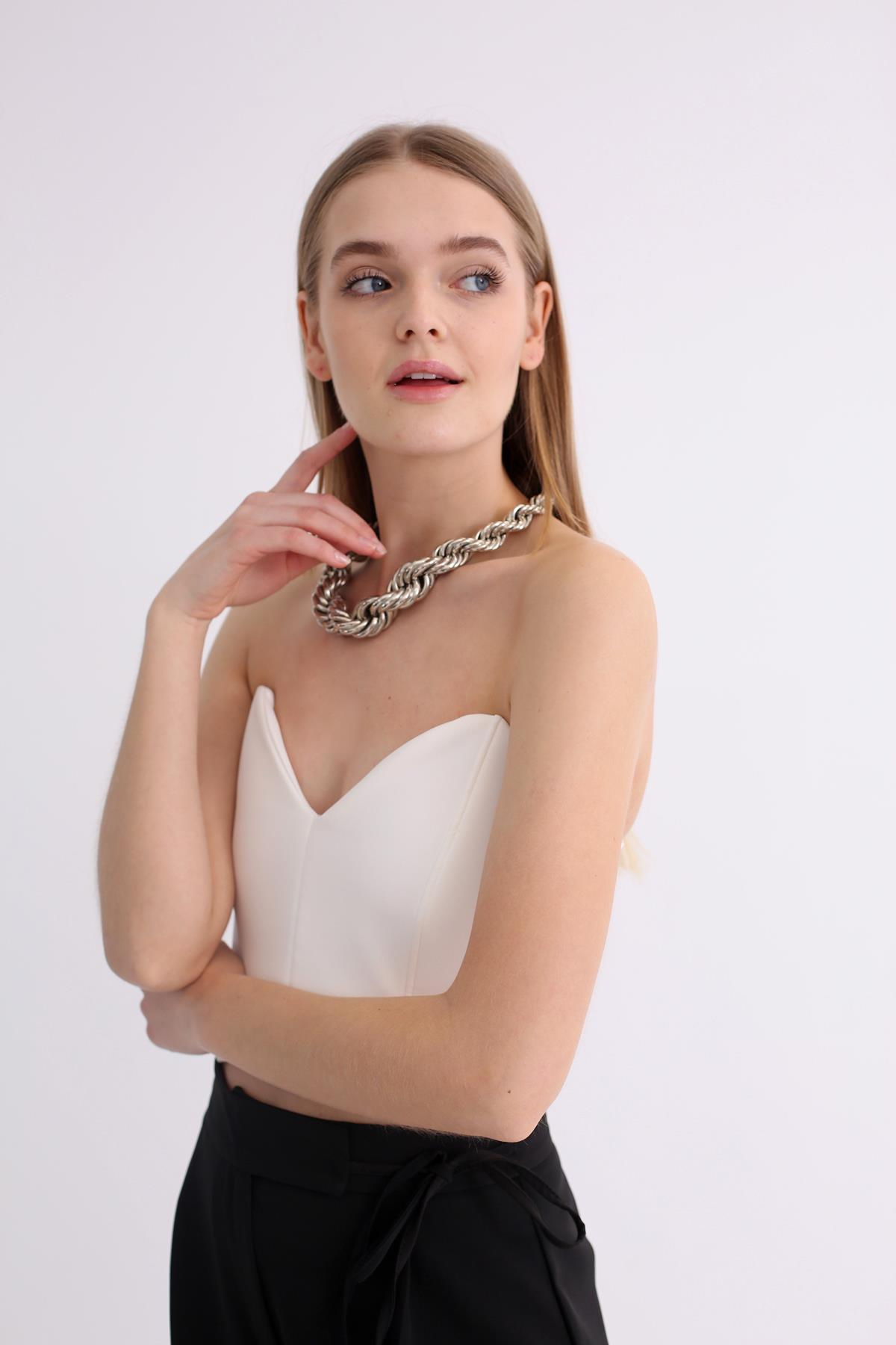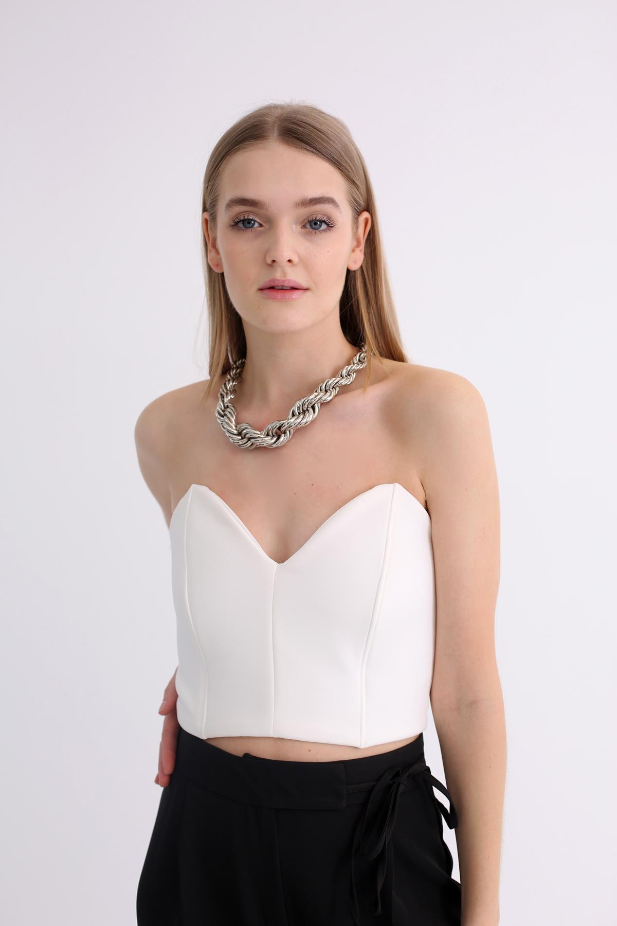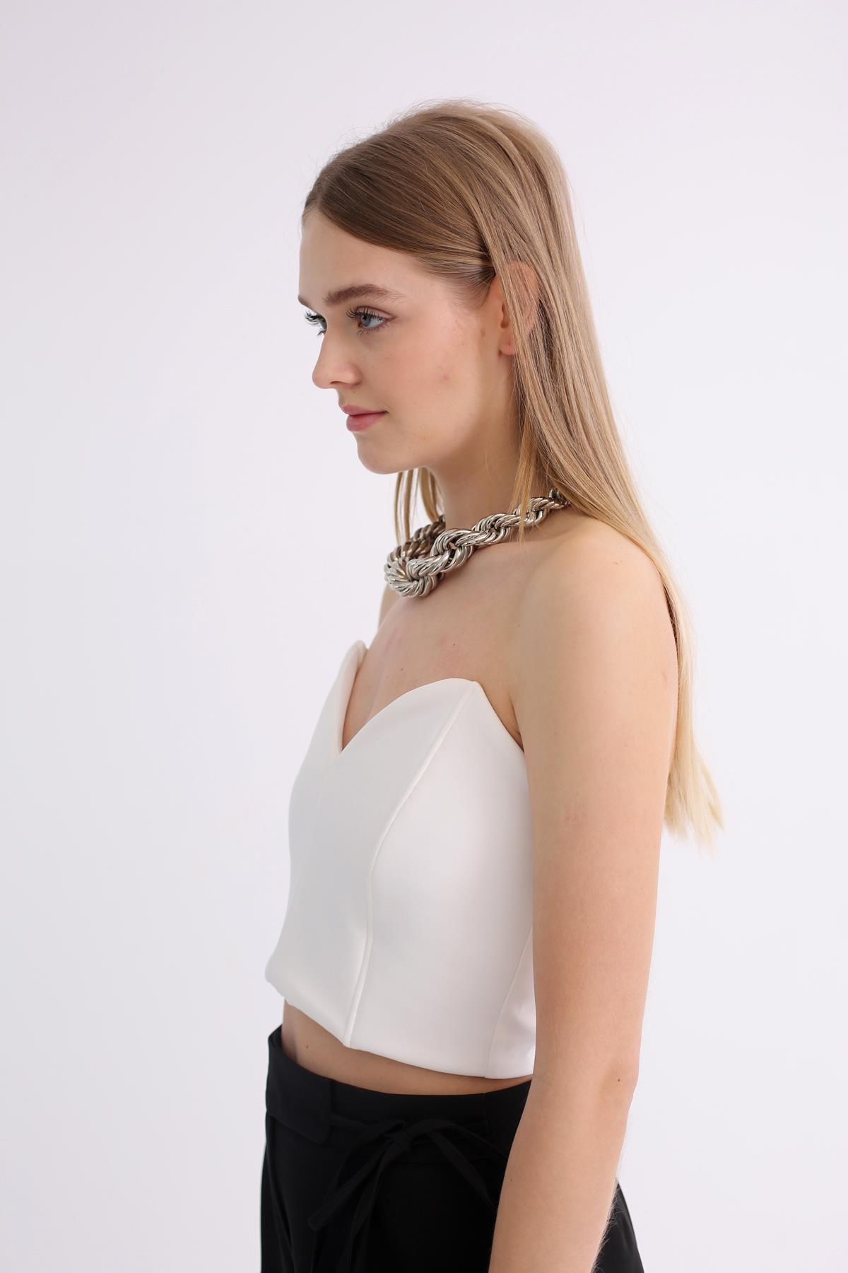 Ekru Kalp Yaka Straplez Büstiyer 70111