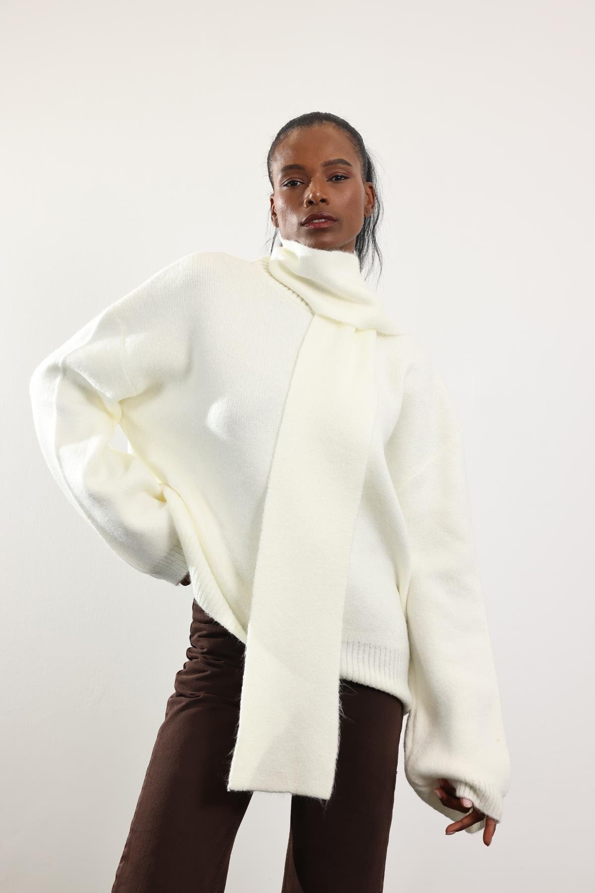 Ekru Şal Detaylı Triko Kazak 92633 (FW-KZHR0652_Ekru)