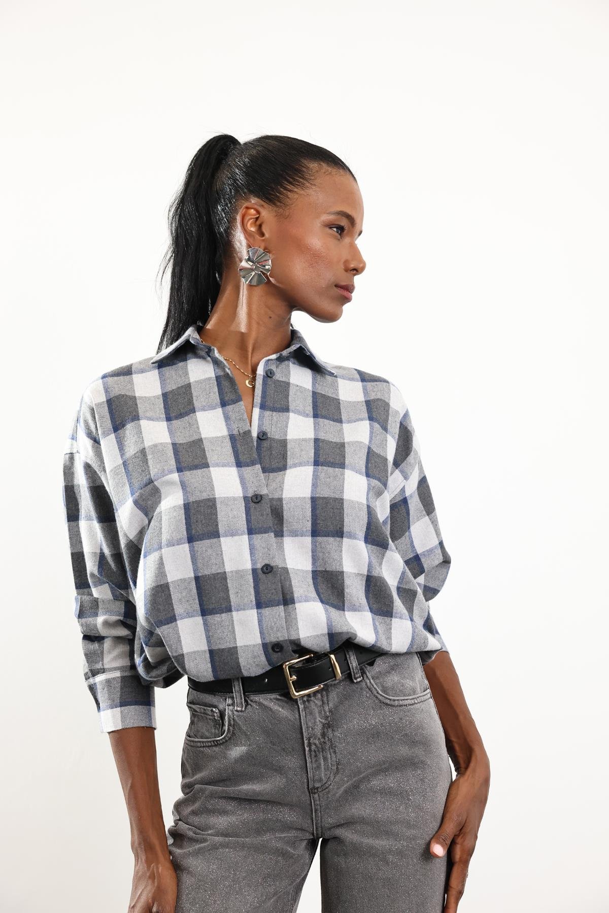 Gri Ekose Desenli Gömlek 6648
