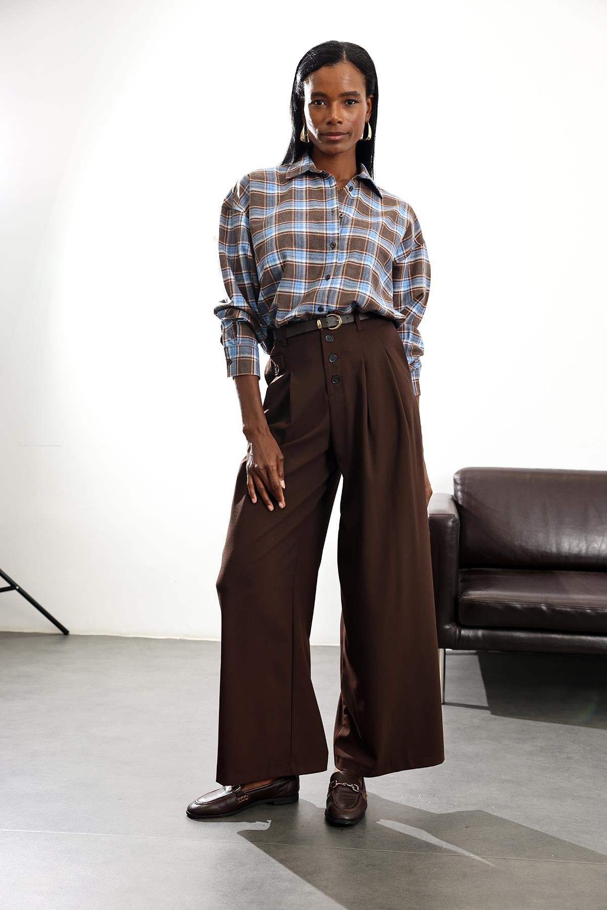 Kahverengi Düğme Detaylı Maskülen Pantolon 1593