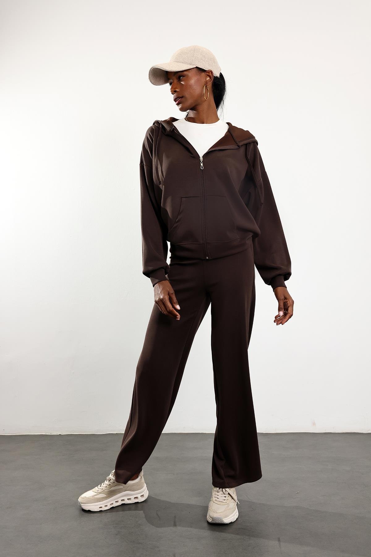 Kahverengi Kapüşonlu Modal Takım (FW-TKM00455_Kahverengi)