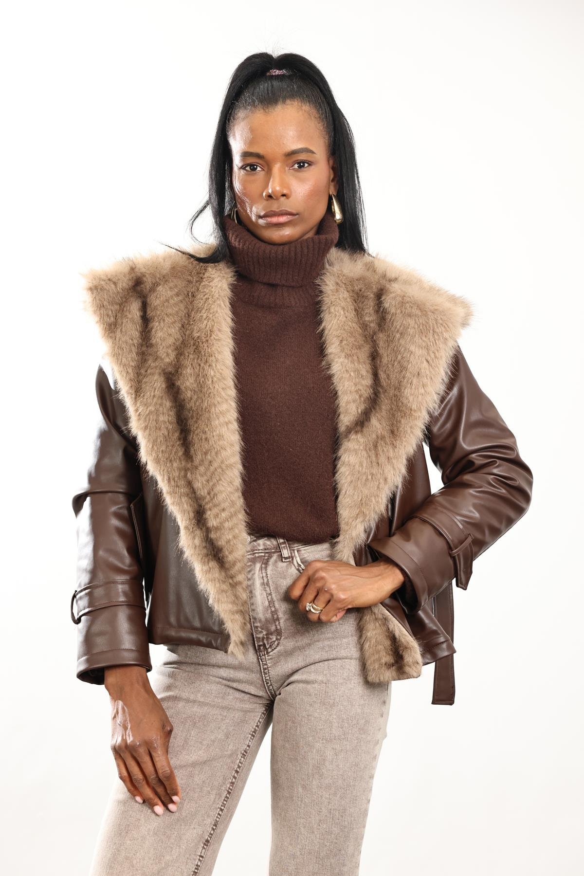 Kahverengi Kürk Yakalı Deri Ceket (FW-CKT00737_Kahverengi)