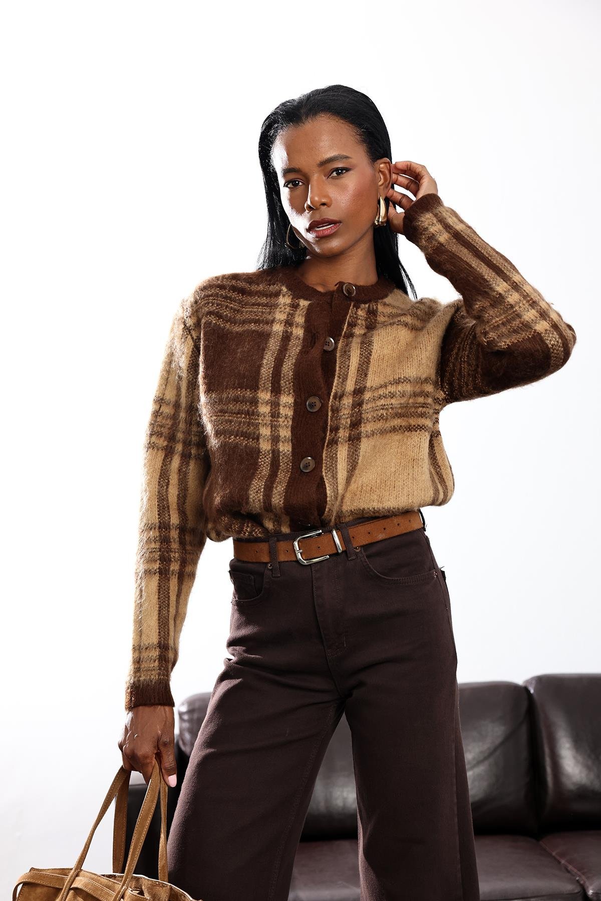 Kahverengi Şardonlu Hırka 0092 (FW-KZHR0677_Kahverengi)