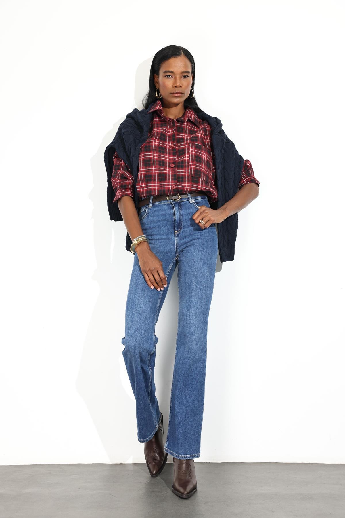 Koyu Mavi Yüksek Bel Likralı Düz Kesim Jean
