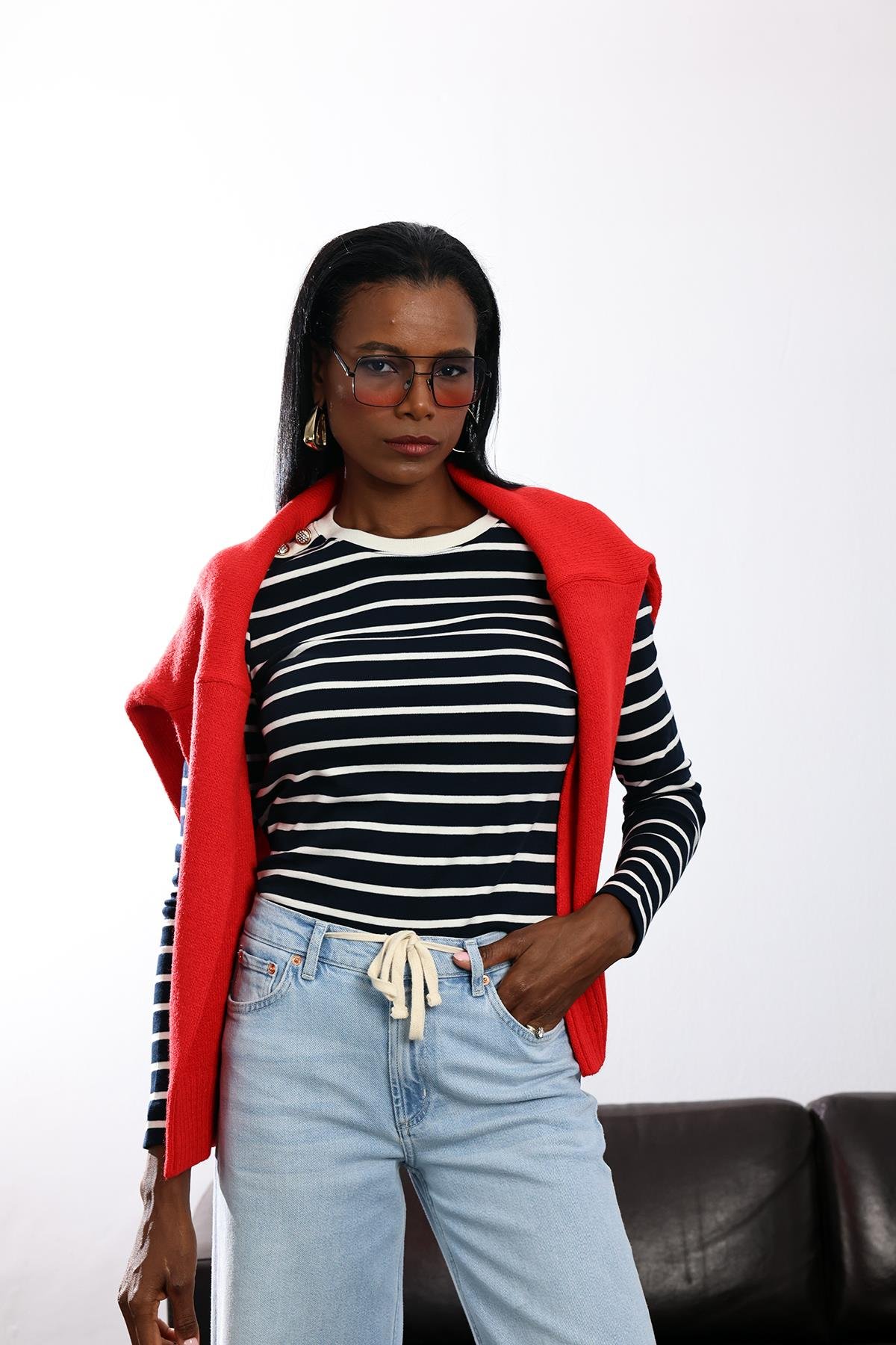 Lacivert Gold Düğme Detaylı Bluz 17077 (FW-TSBL0258_Lacivert)