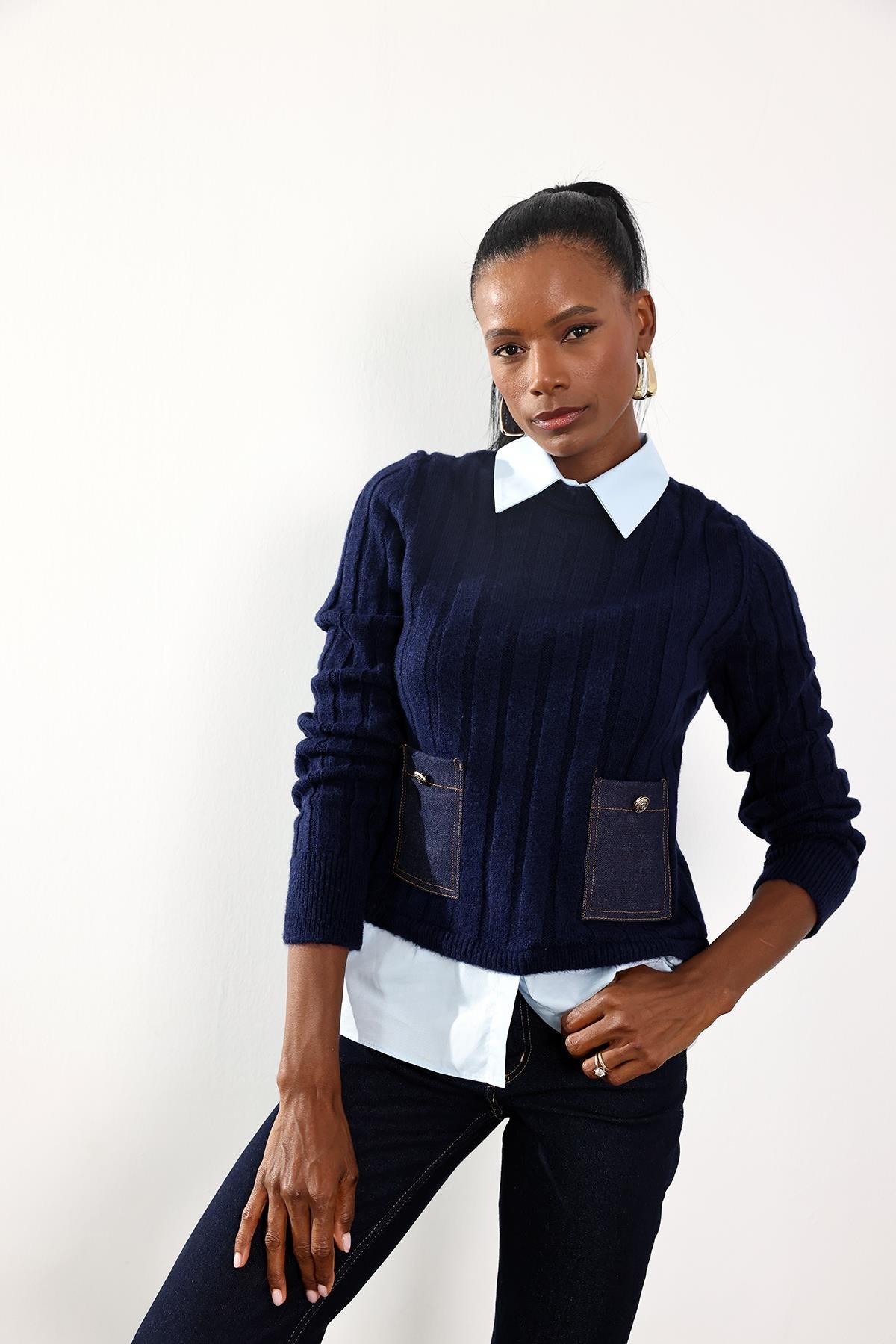Lacivert Gömlek Yaka Kazak 0526 (FW-KZHR0646_Lacivert)