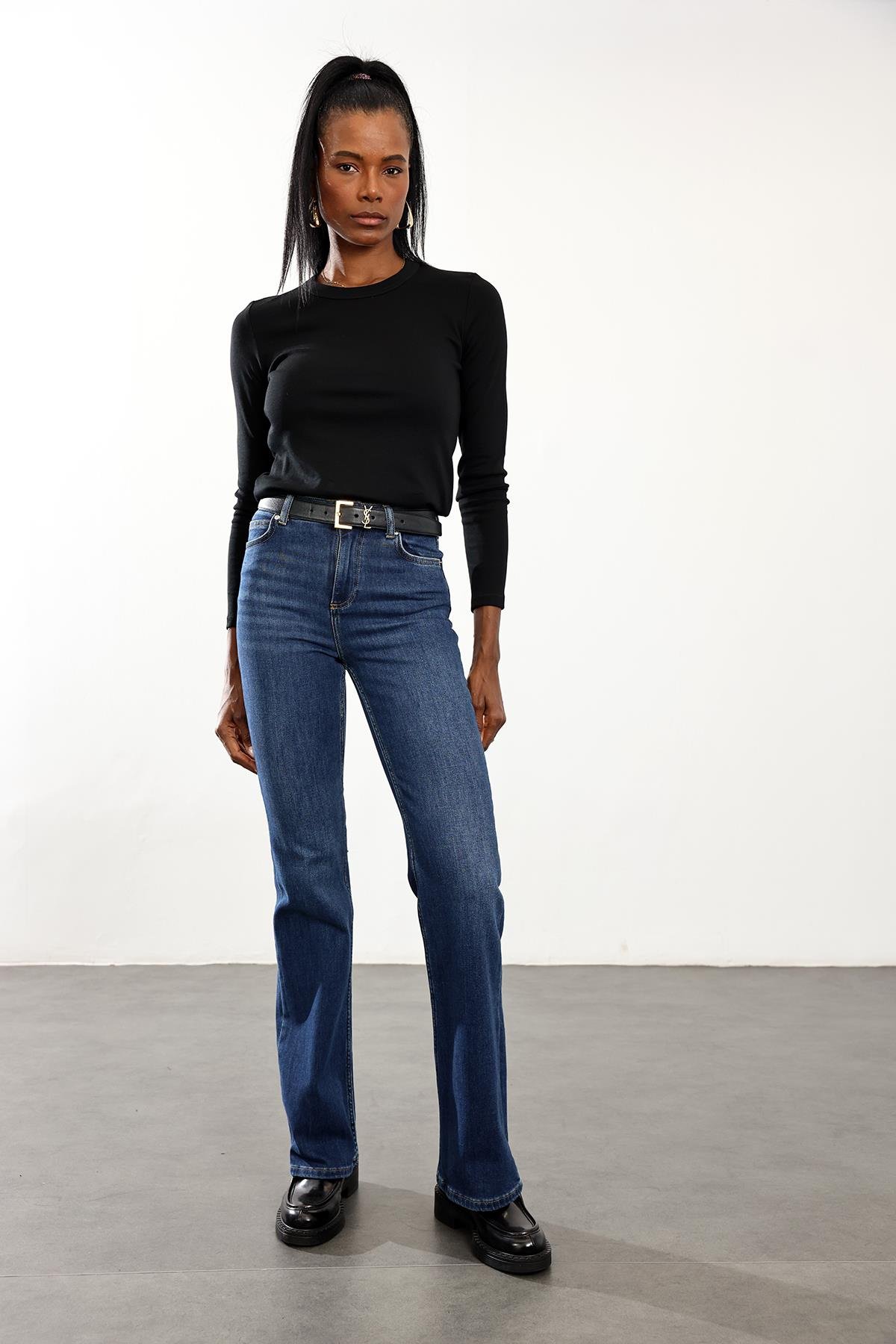 Mavi Yüksek Bel Likralı Flare Jean (FW-PTLN2169_Mavi)