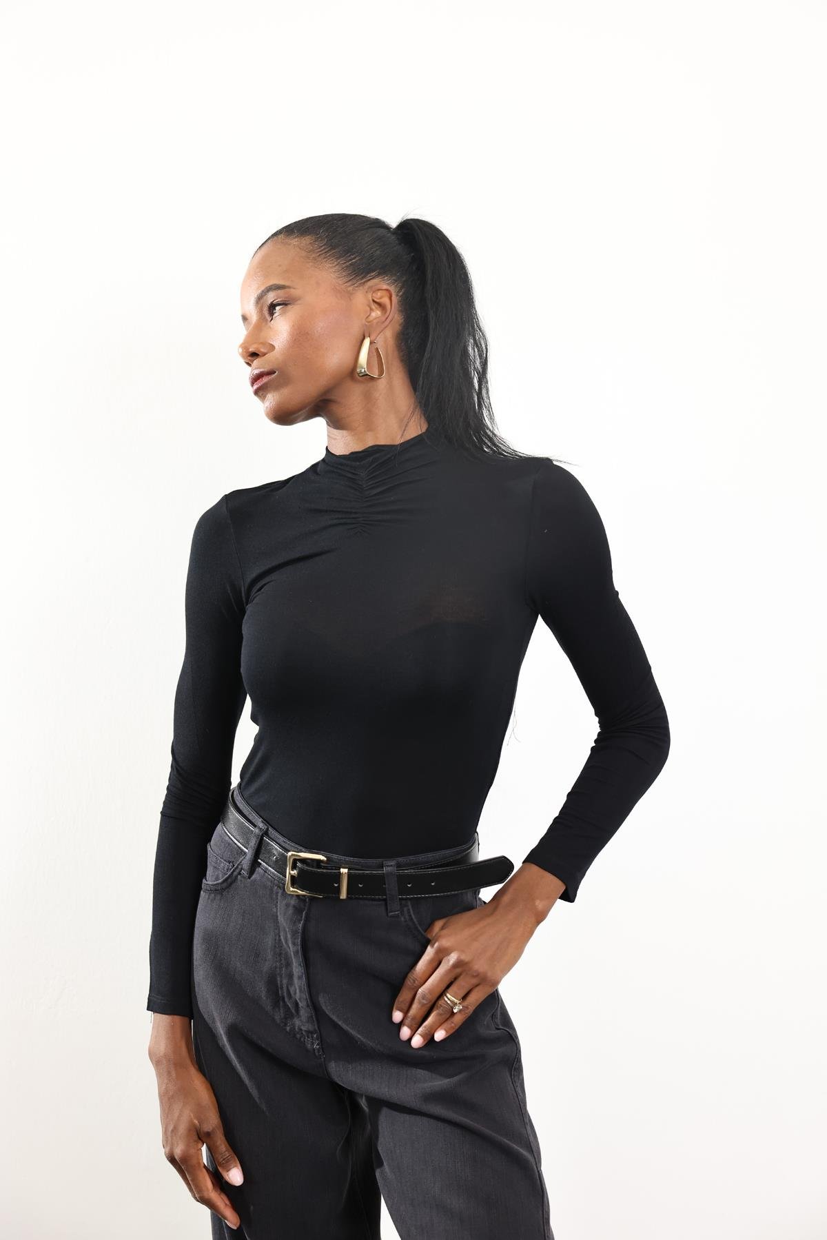 Siyah Dik Yaka Bluz 17161 (FW-TSBL0248_Siyah)
