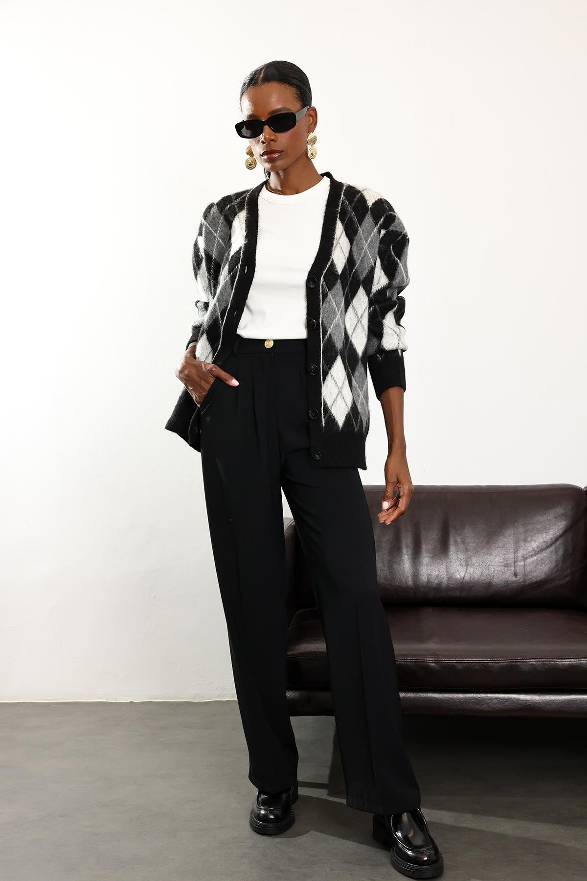 Siyah Gold Düğmeli Palazzo Pantolon 51078 (FW-PTLN2130_Siyah)