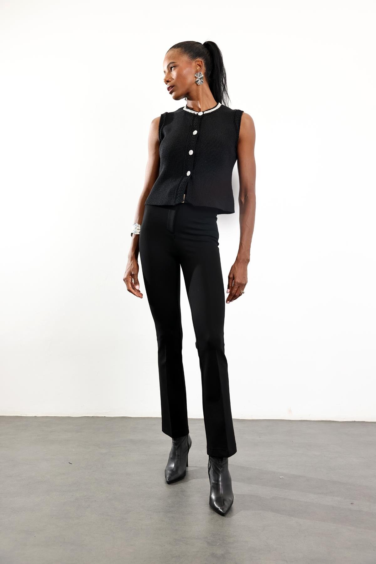 Siyah Kemerli Likralı Düz Kesim Pantolon 17152