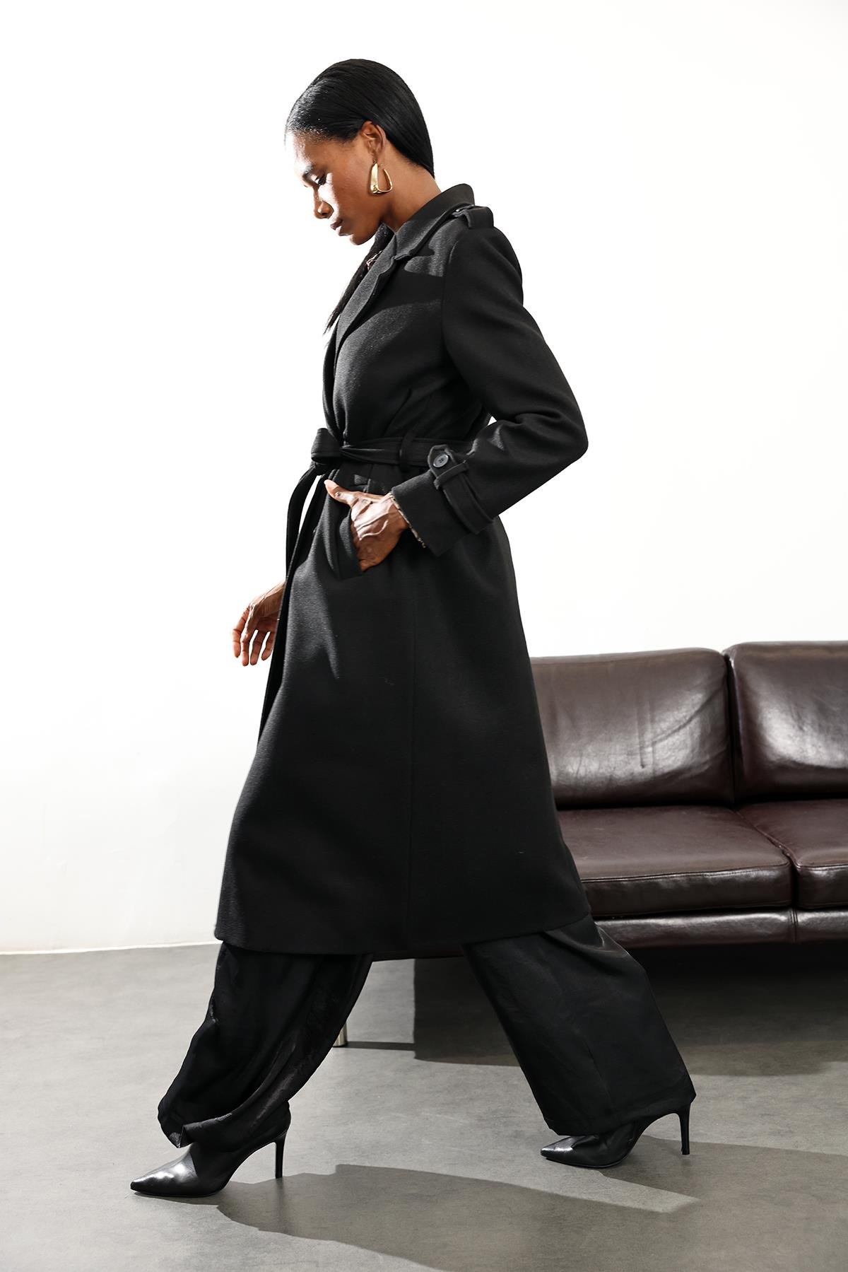 Siyah Kruvaze Kaşe Palto D99618 (FW-PLT00278_Siyah)