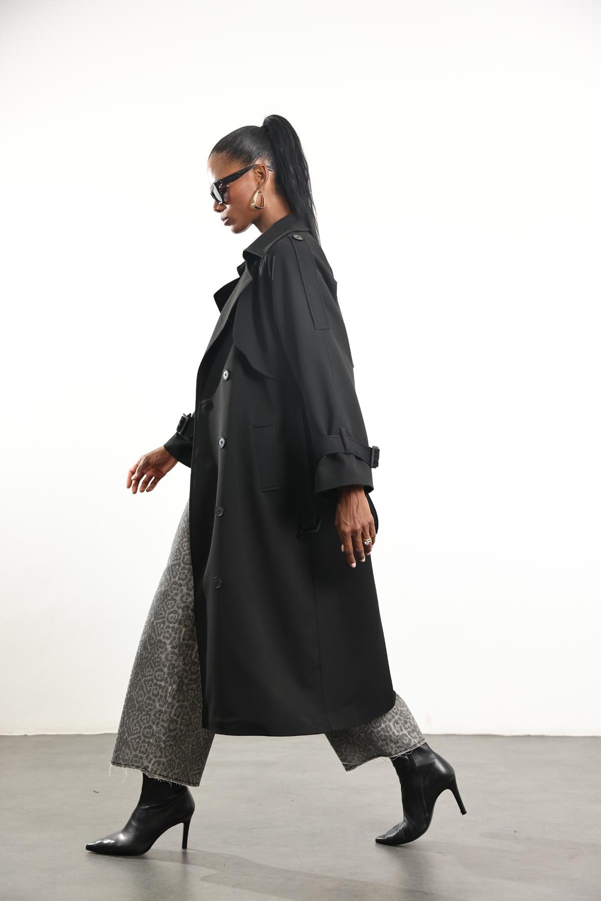 Siyah Kuşaklı Kruvaze Palto