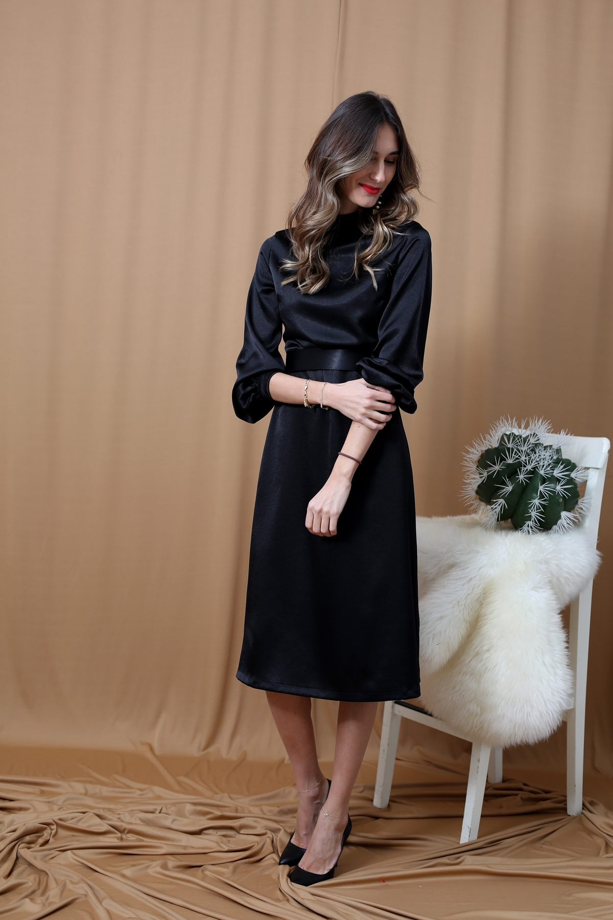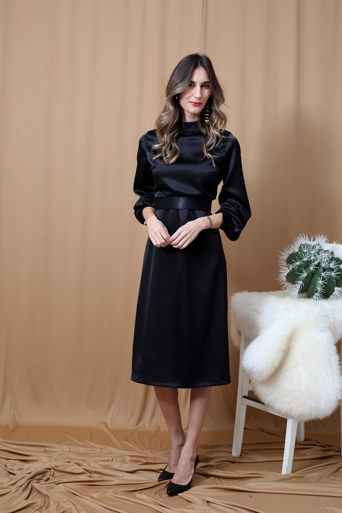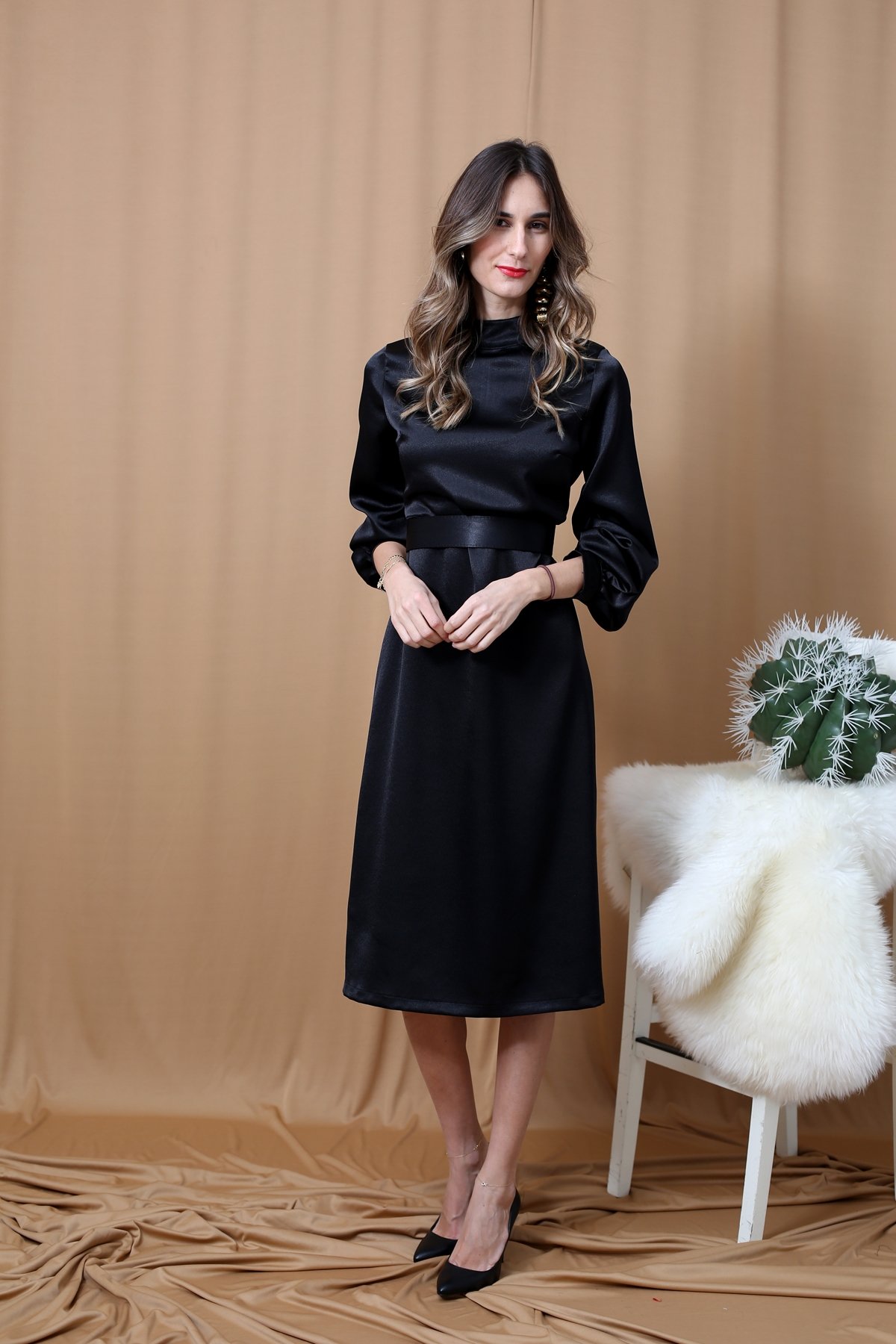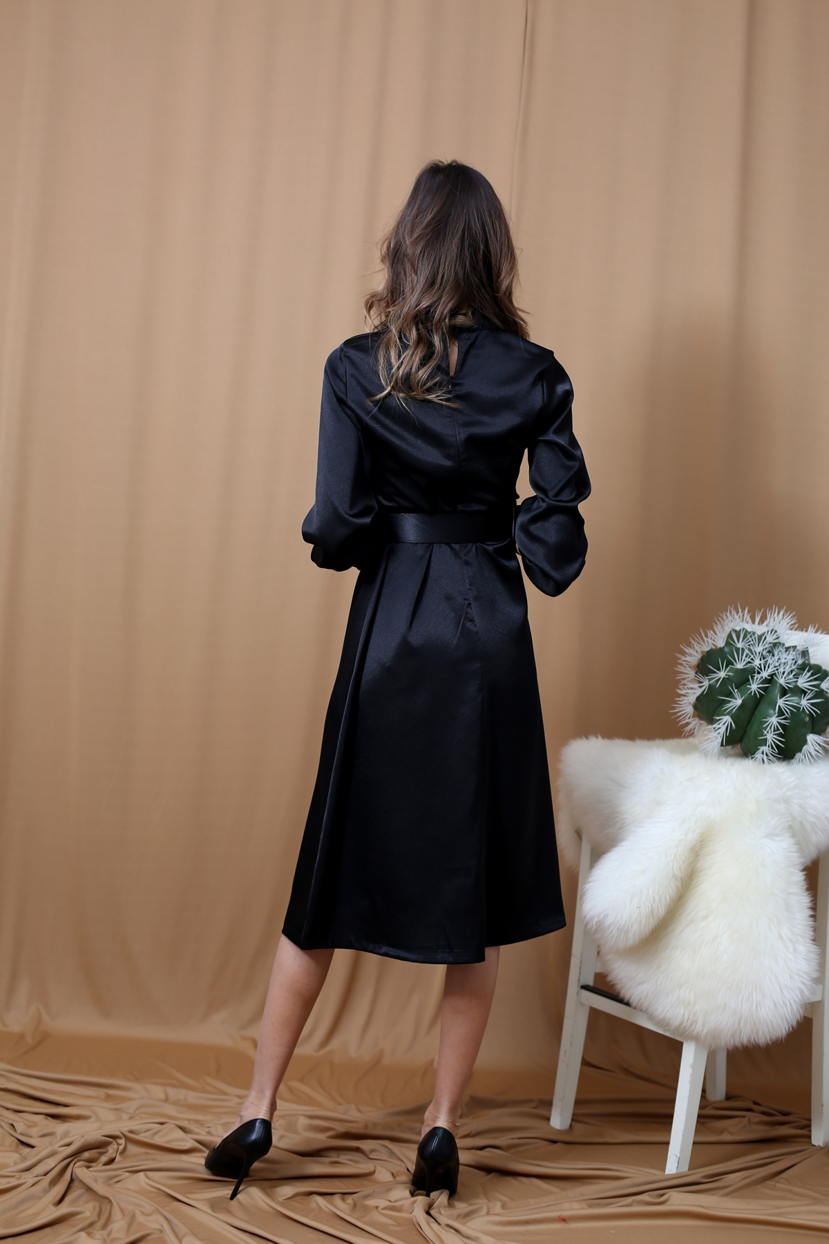 Siyah Saten Boğazlı Elbise (FW-ELBS310_Siyah)