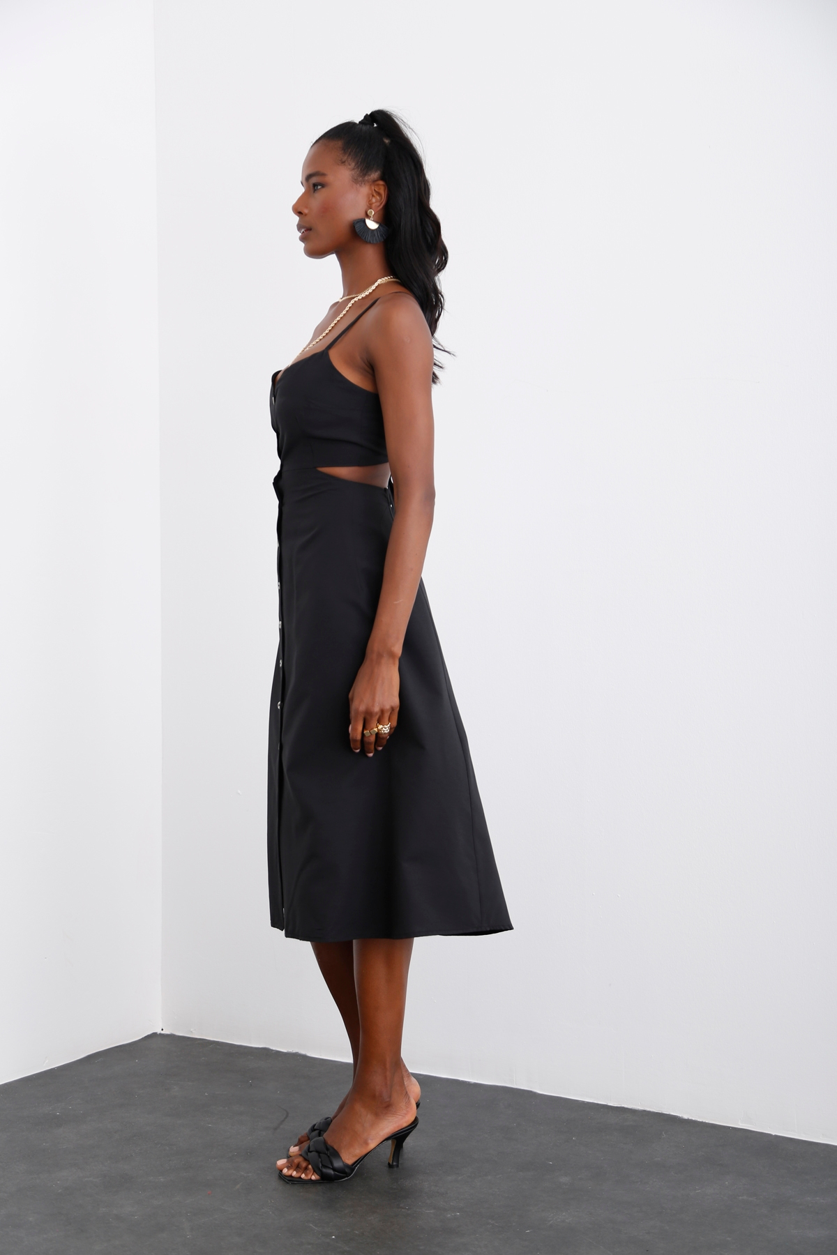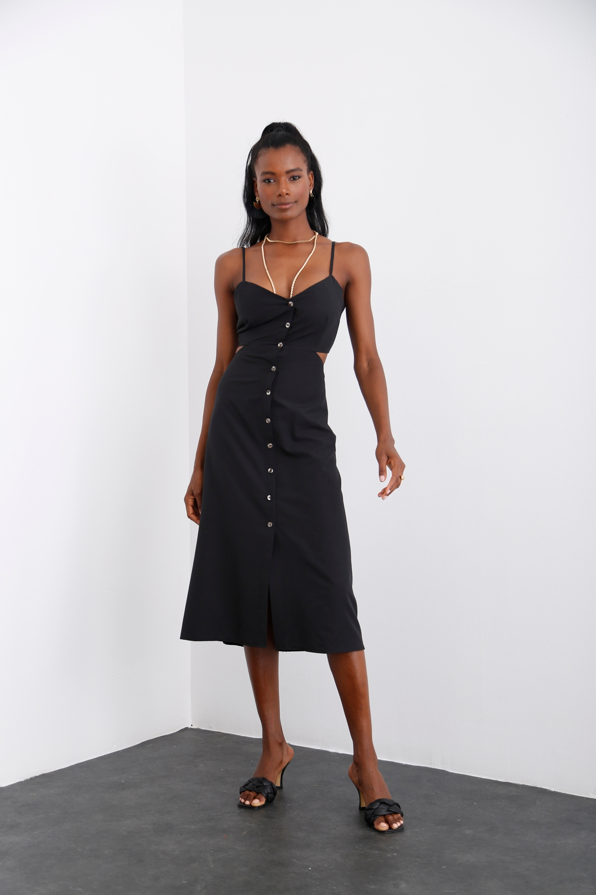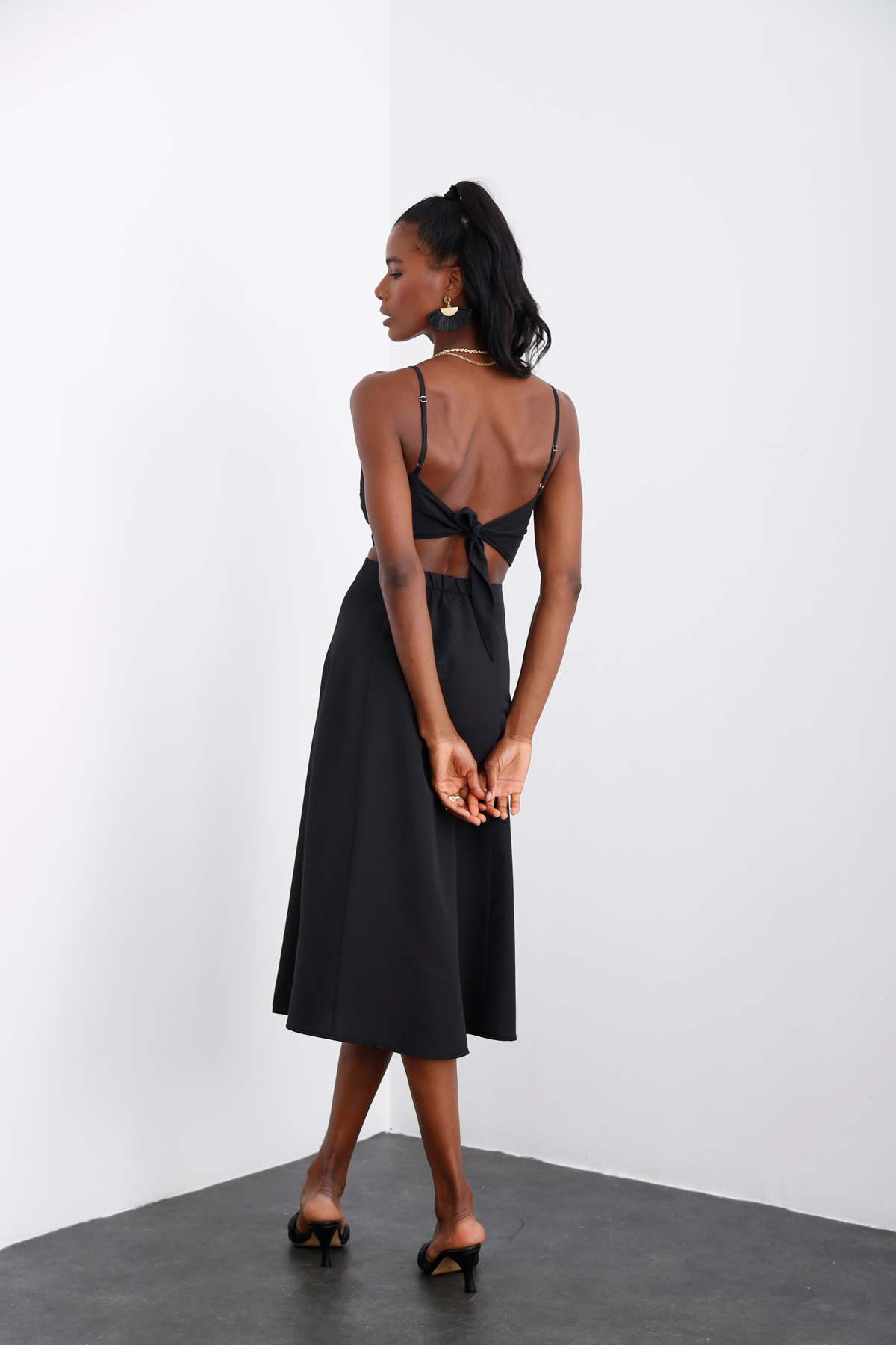 Siyah Sırtı Bağlamalı Askılı Elbise
