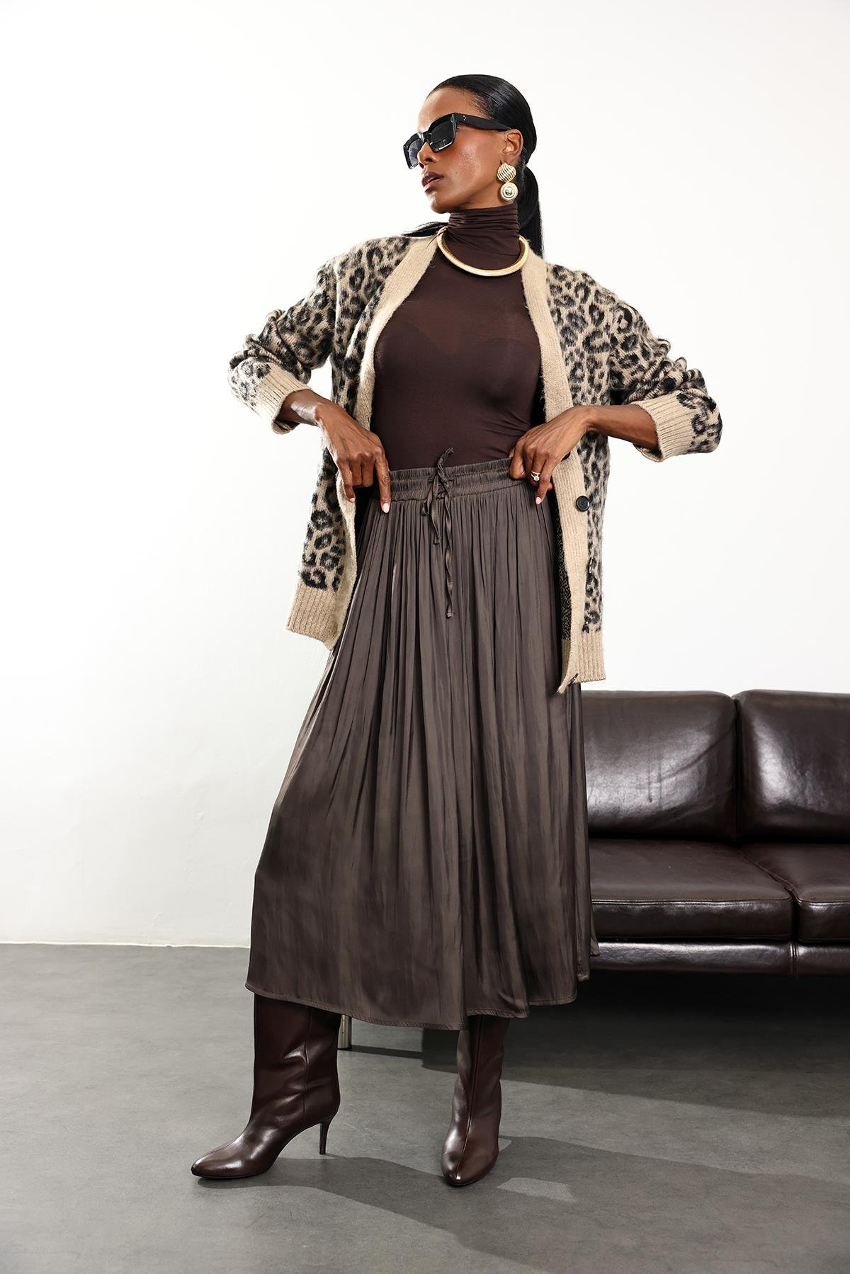Vizon Kırışık Mat Saten Etek 2947 (FW-ETK00715_Vizon)