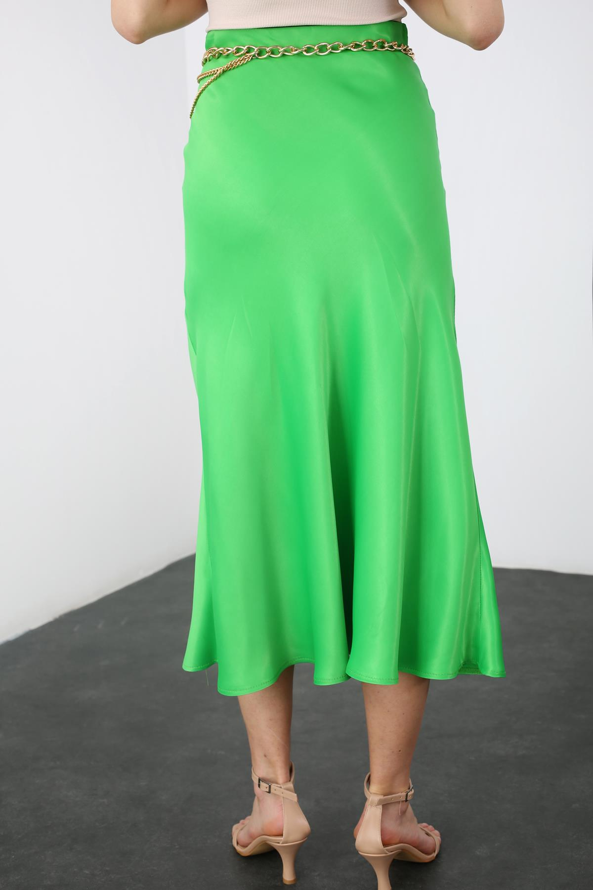 Yeşil Beli Lastikli Saten Verev Etek 14067 (SS-ETK00388_Yeşil)