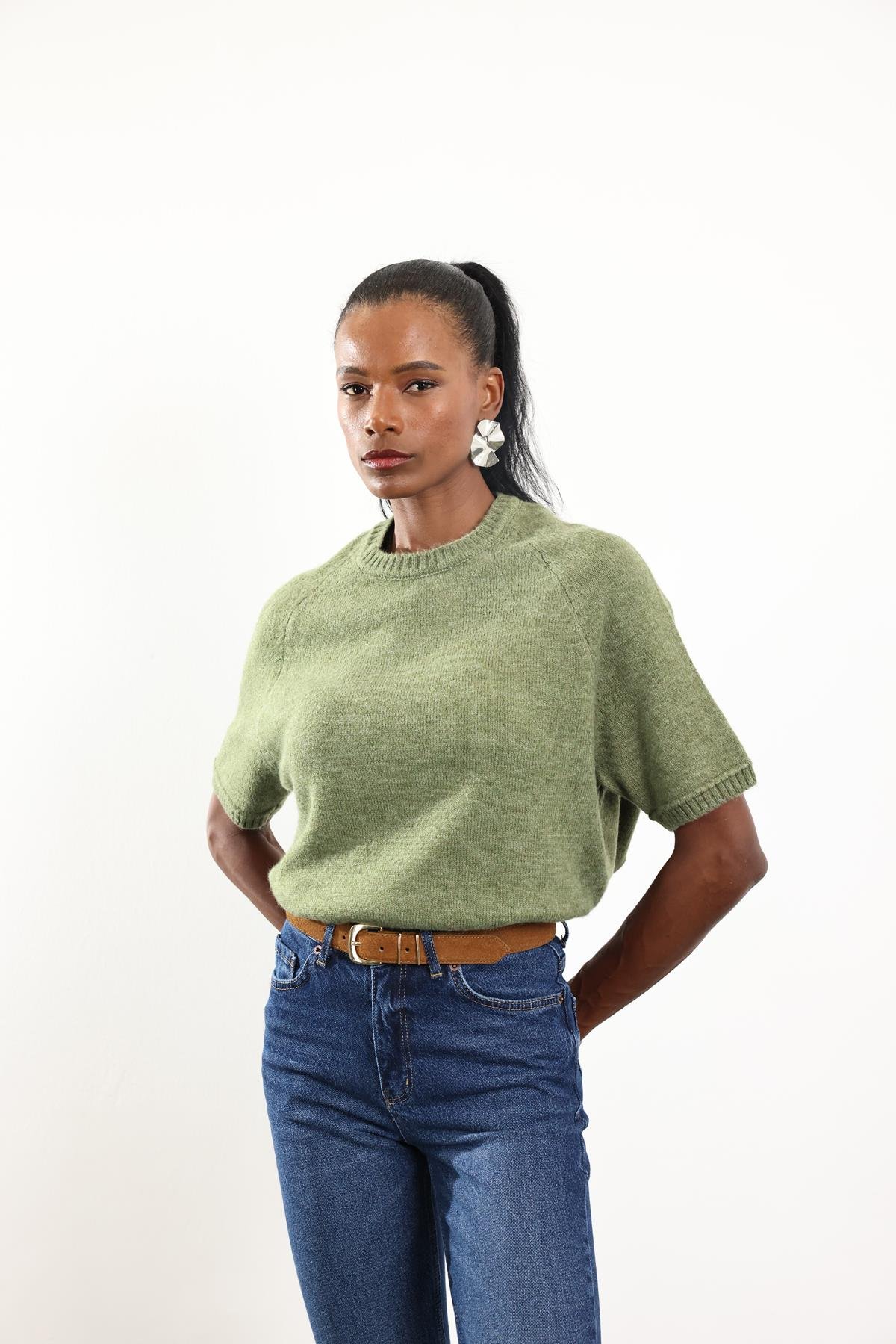 Yeşil Bisiklet Yaka Kısa Kol Triko 251118